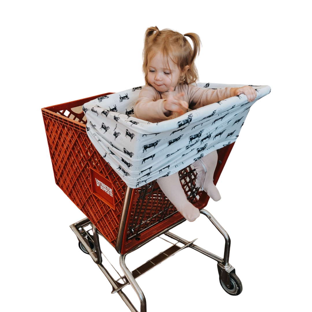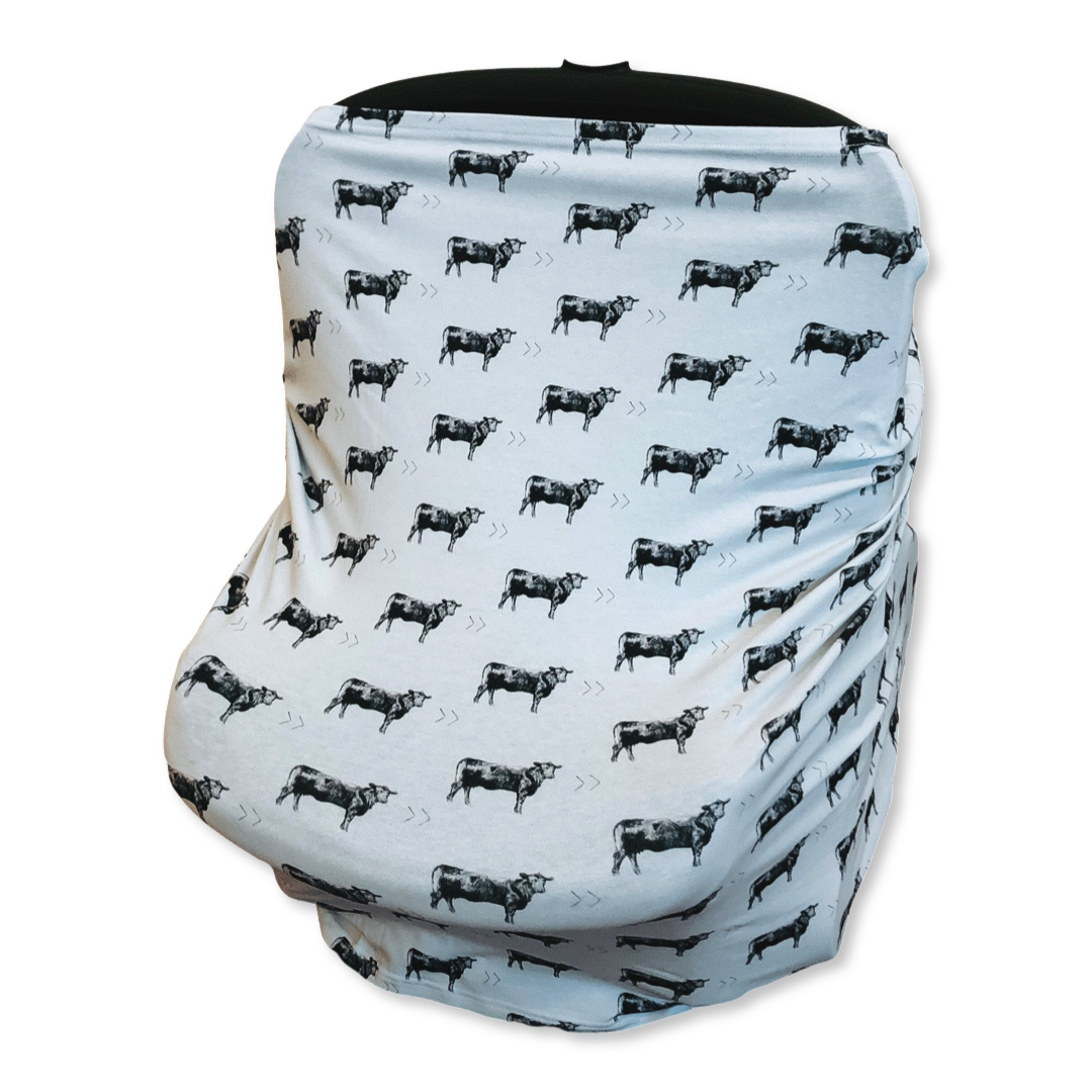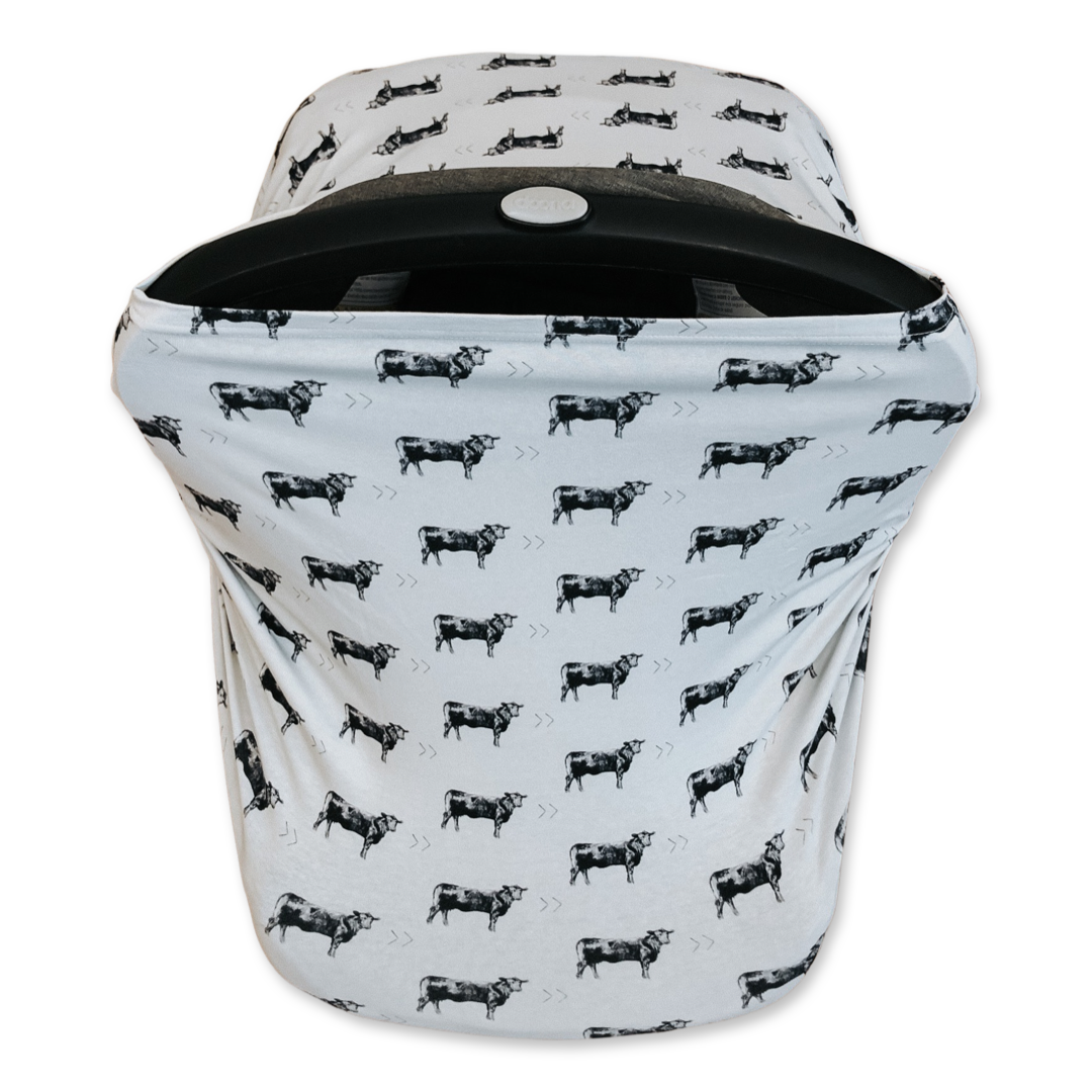 An amazing, versatile car seat cover that can also be used as a shopping cart cover, high chair cover, nursing cover, and can also be worn as a scarf for nursing mothers.