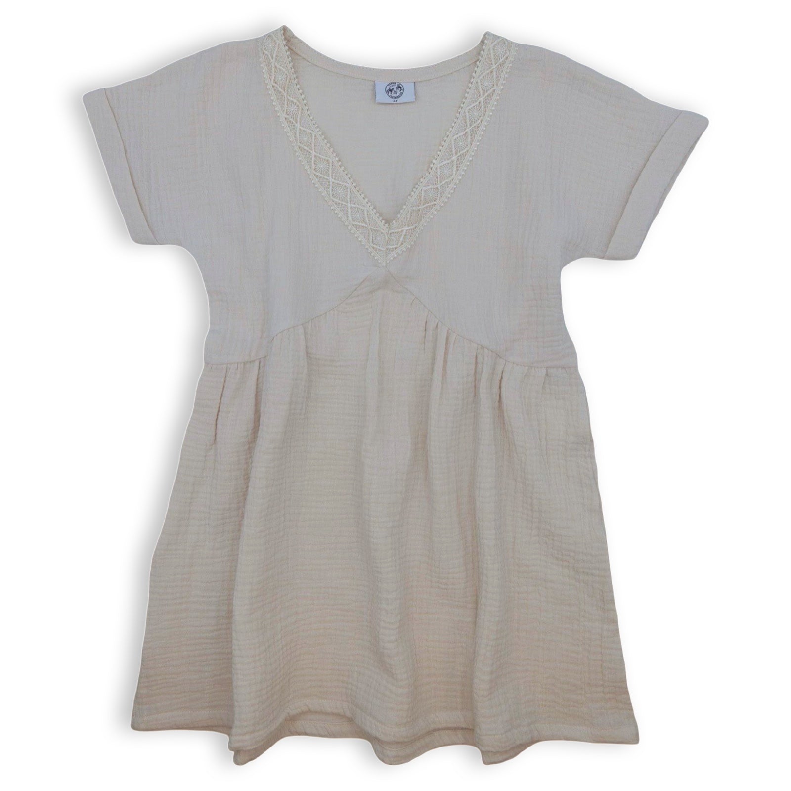 Beautiful, beige cotton gauze swim cover with the prettiest lace trim. Momma & Me options to match all your girls at the beach and look stunning doing it. Can also be worn as a cute summer dress.