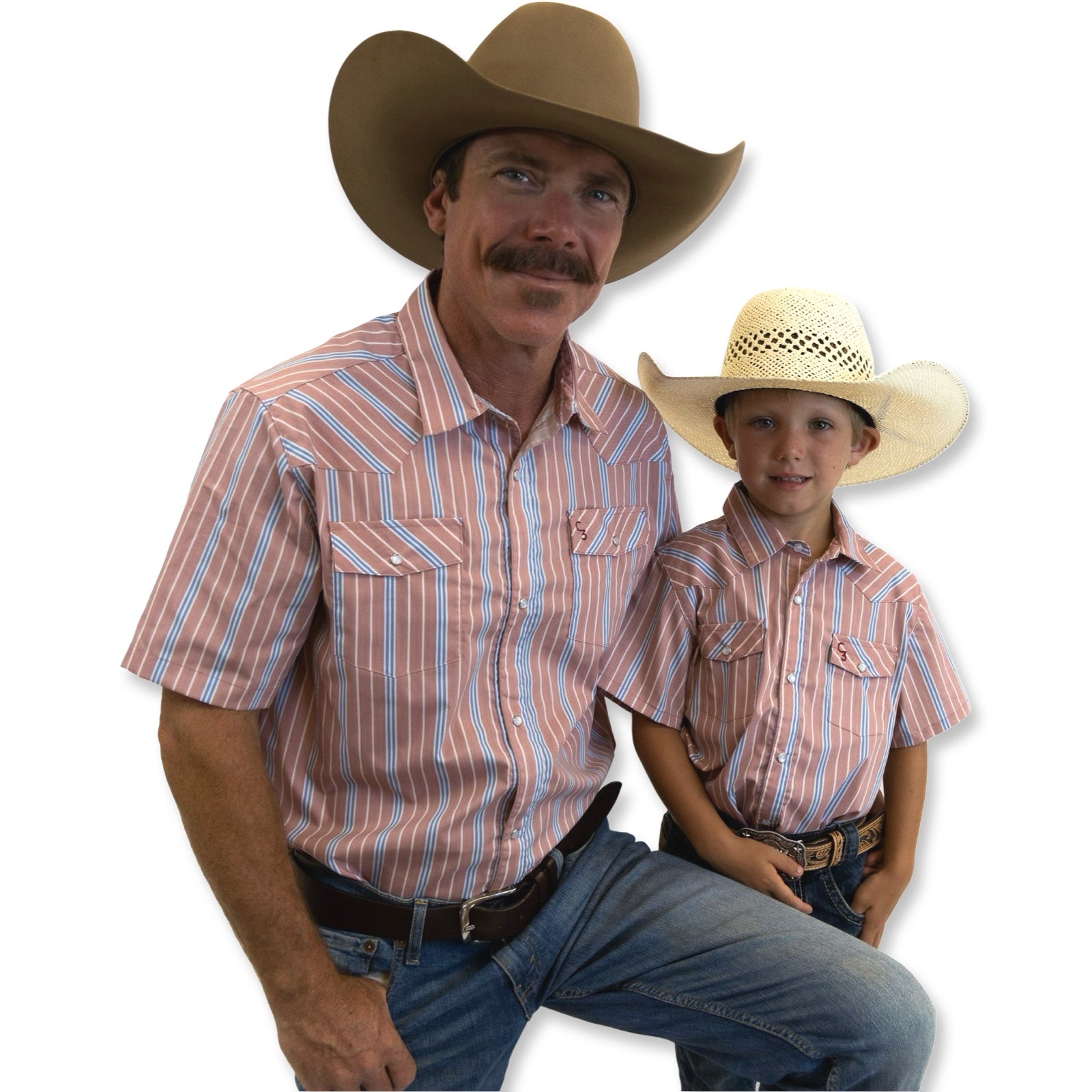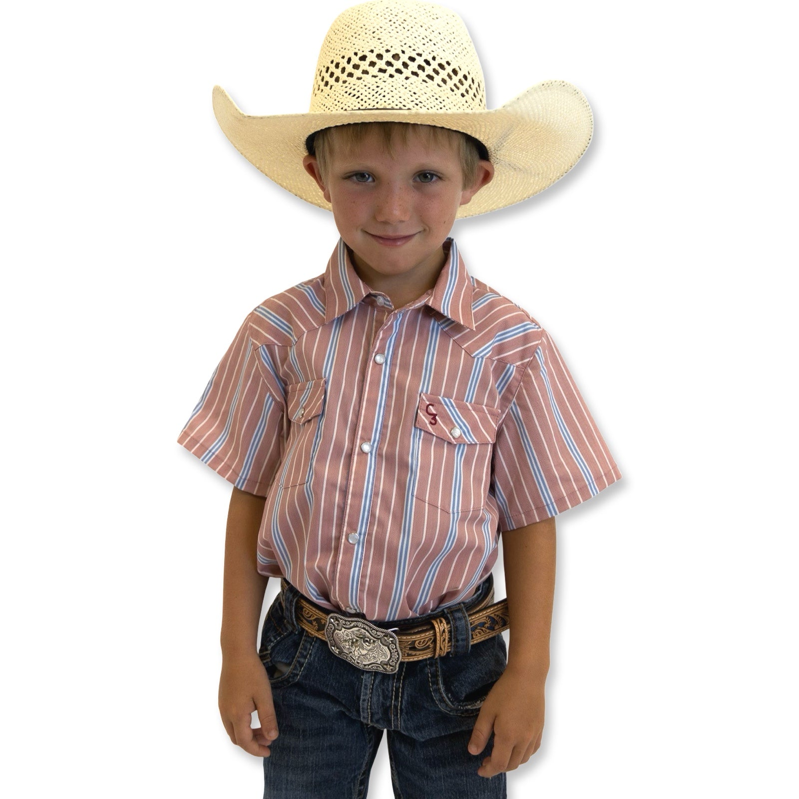 Vintage Blue and Red Stripe Short Sleeve Pearl Snap