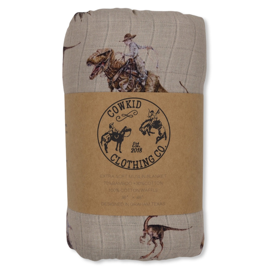 Cowboy Dino Bamboo Muslin/Waffle Blanket