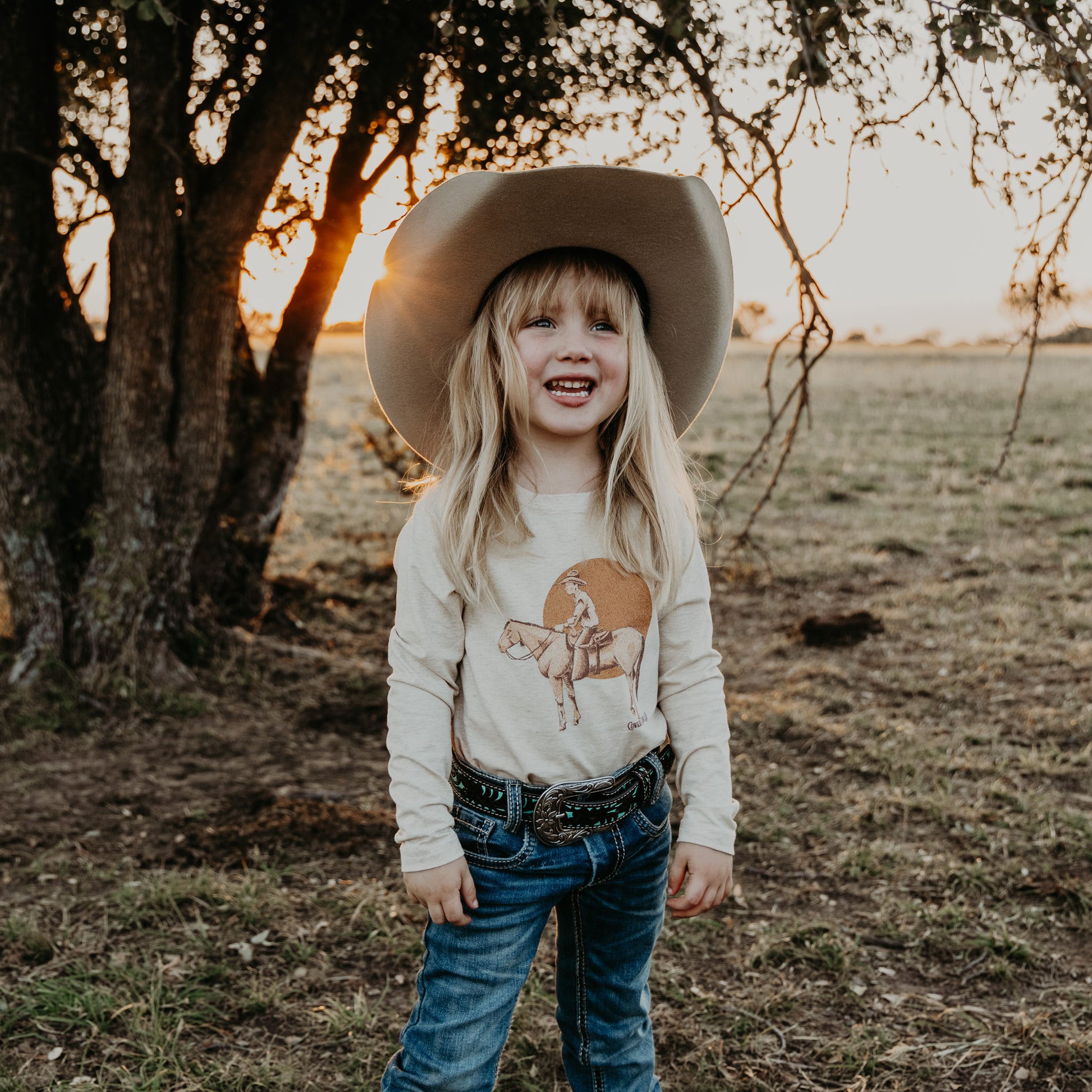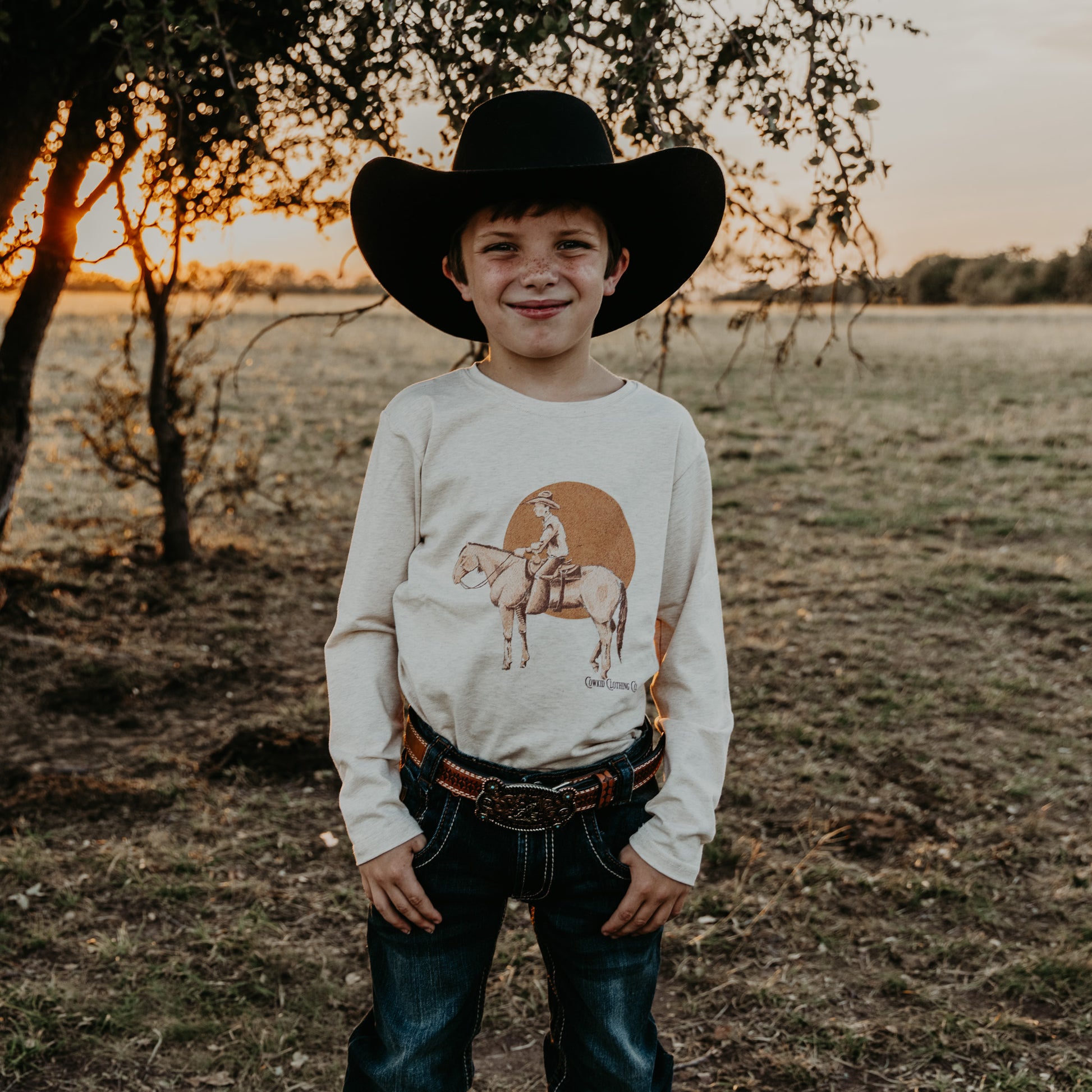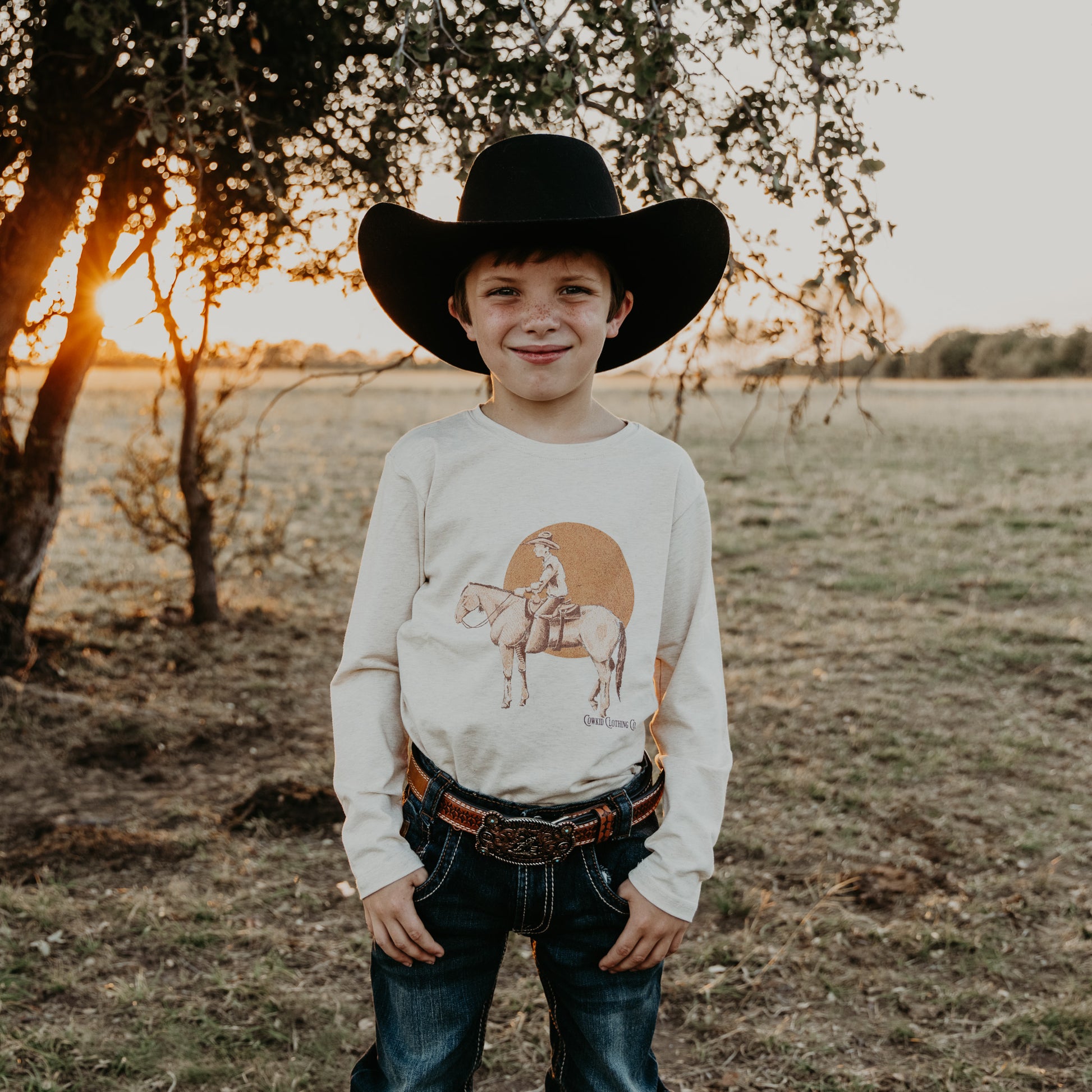 Cowkid Clothing Co. shirts are custom designed to perfectly fit your kids! They are a great length, not boxy or short and they run true to size. The fabric is INCREDIBLE! It's a beautiful, high-quality cotton blend. They are so soft, stretchy, and not too thin or too thick. The print on this shirt is a high-quality screen print that will last years and years and many washes!!