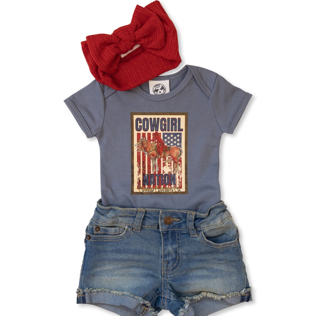 Cowkid Clothing Co. onesies are custom designed to perfectly fit your kids! They are a great length, not boxy or short and they run very true to size. The fabric is INCREDIBLE! It's a beautiful, high-quality cotton blend. They are so soft, stretchy, and not too thin or too thick. The print on this shirt is also a very high-quality screen print that will last years and years and many washes!!