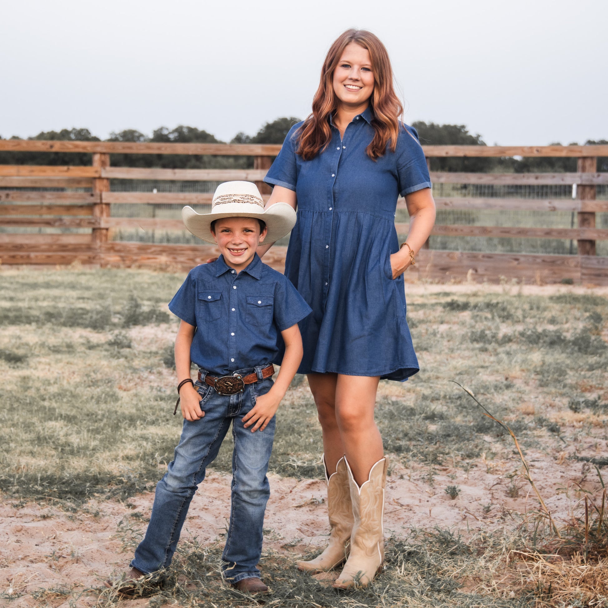 Dark Denim Short Sleeve Pearl Snap (Toddler-Adult)