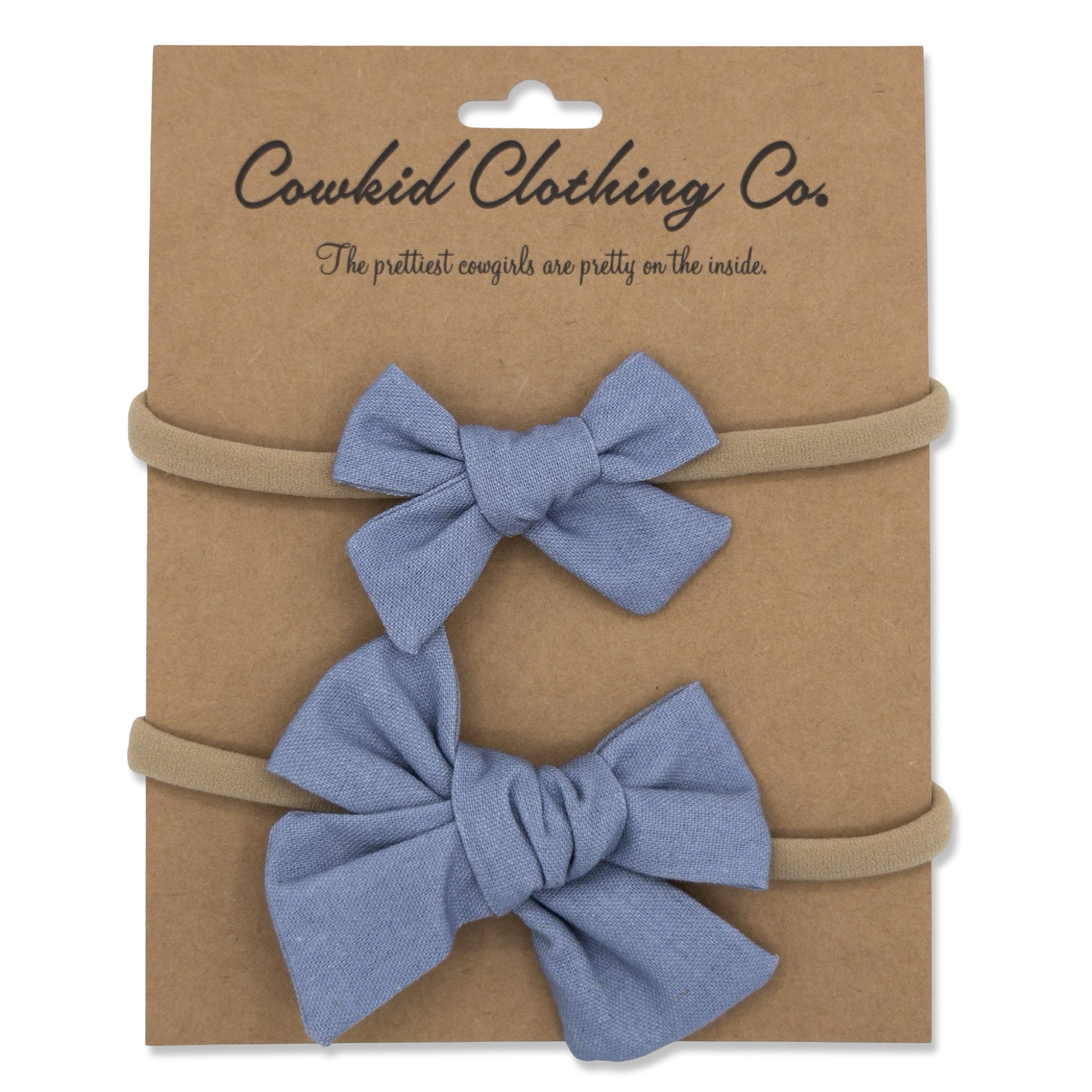 The sweetest little classic linen bows for your little cowgirls. 2 different sizes let them stay cute and stylish as they grow! Nylon band is so comfortable and stretchy for squishy little baby heads.