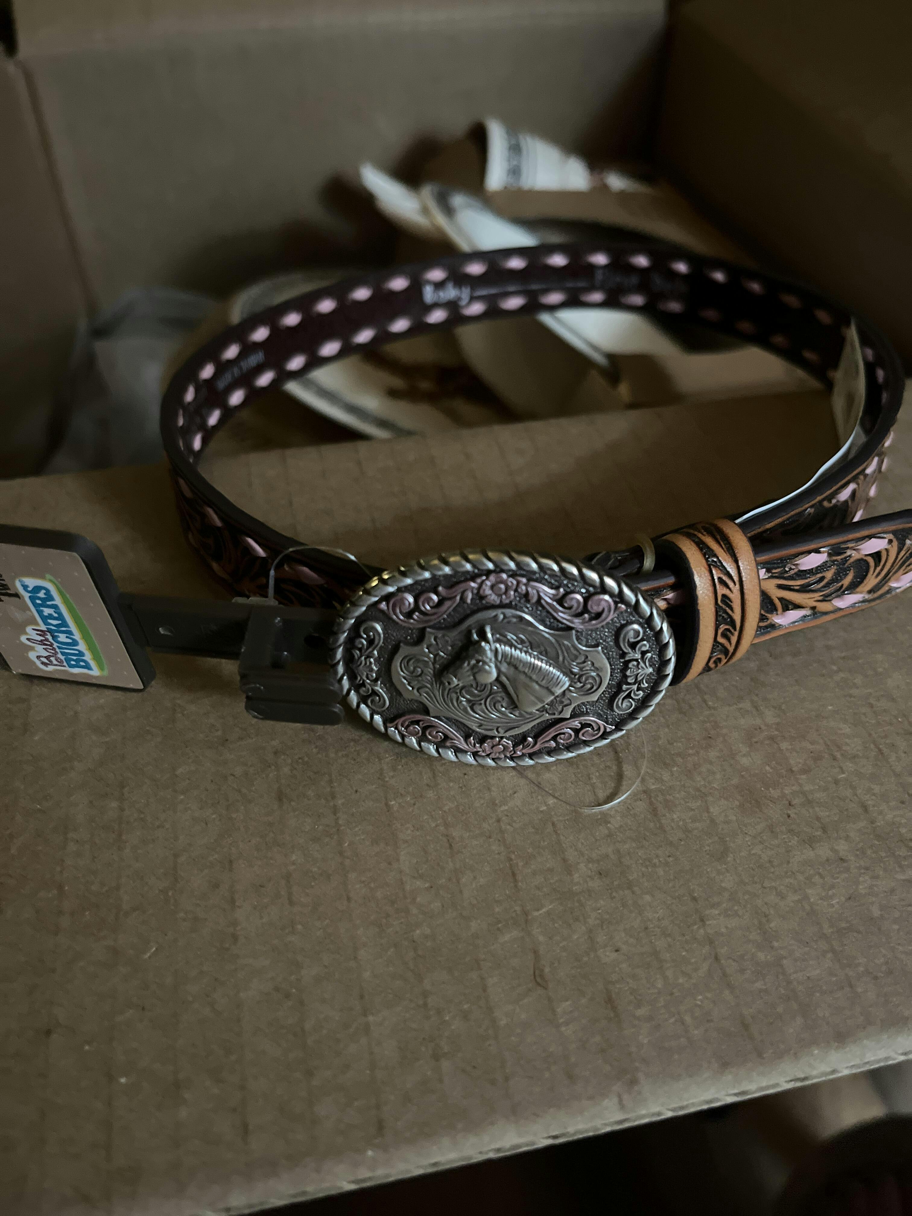 Floral Tooled Baby Belt with Buckle