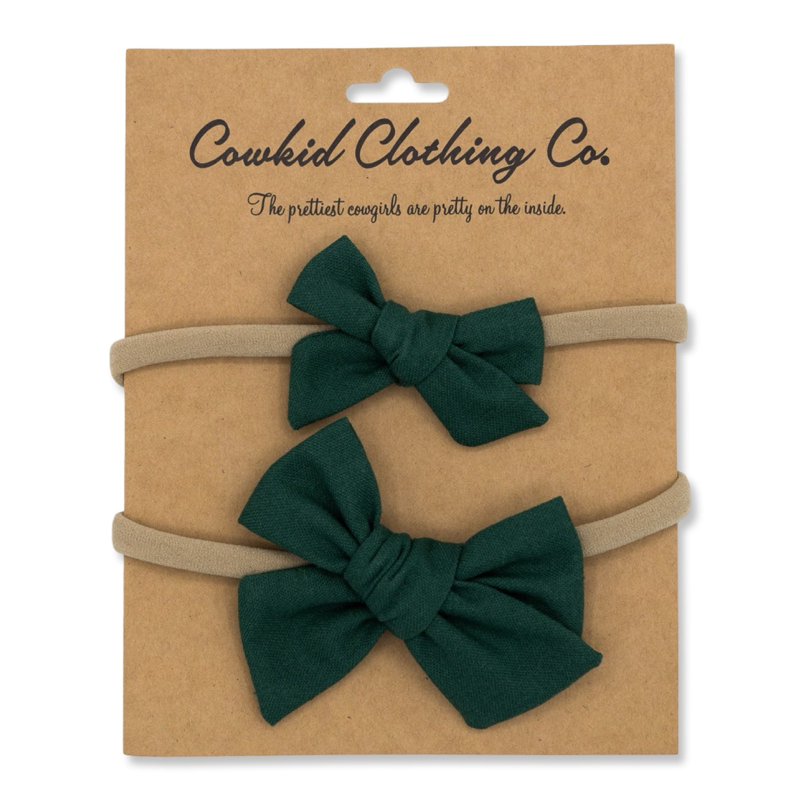 The sweetest little classic linen bows for your little cowgirls. 2 different sizes let them stay cute and stylish as they grow! Nylon band is so comfortable and stretchy for squishy little baby heads.