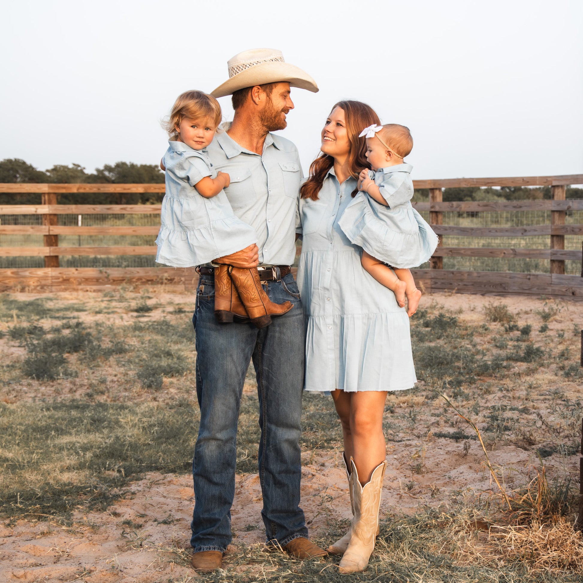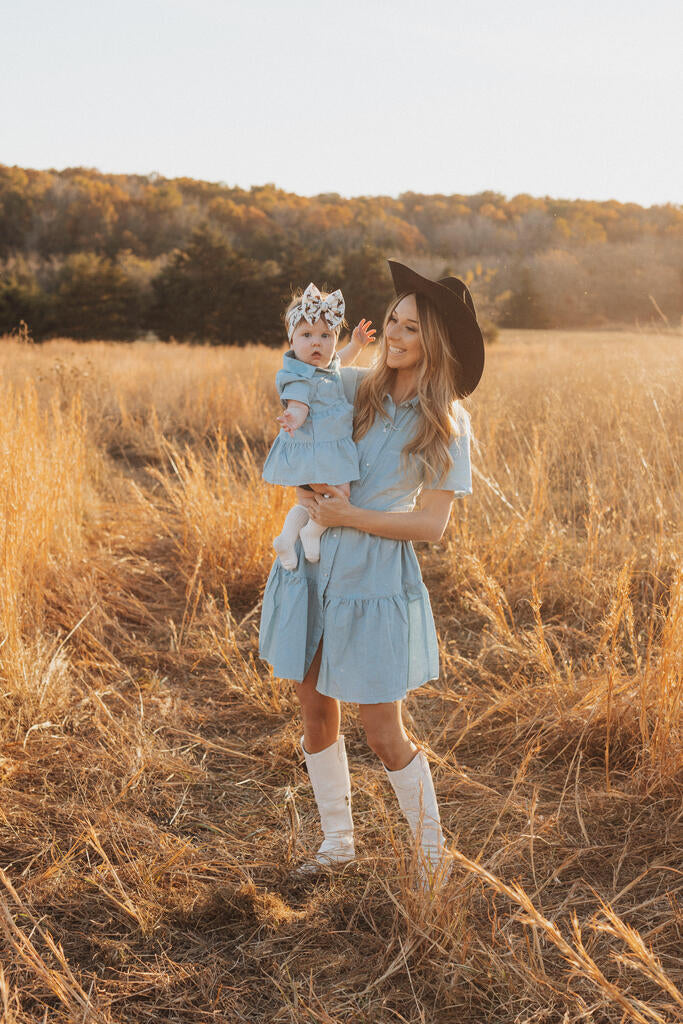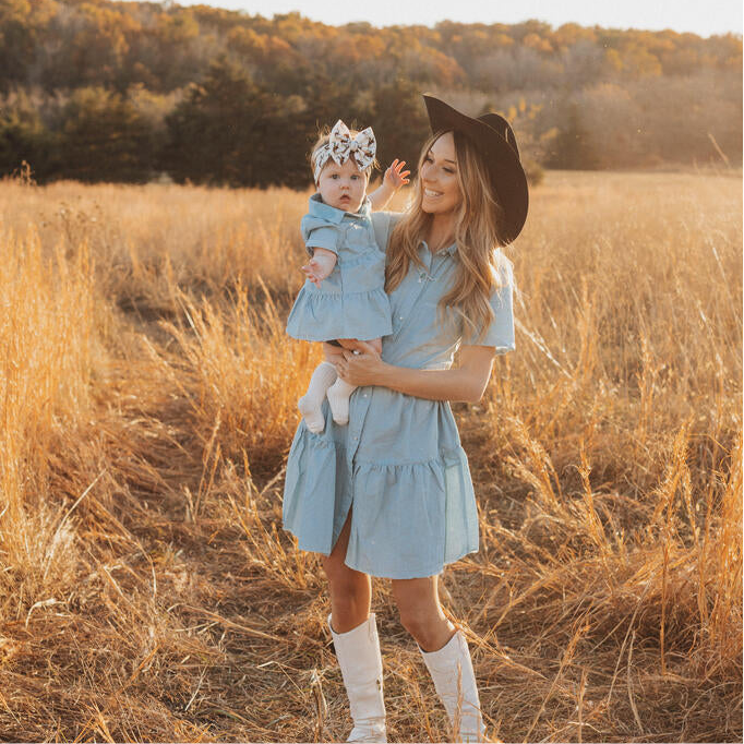 Light Denim Pearl Snap Dress (Infant-Adult)