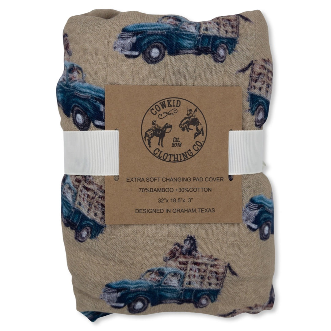 Little Blue Truck Bamboo Muslin Changing Pad Cover