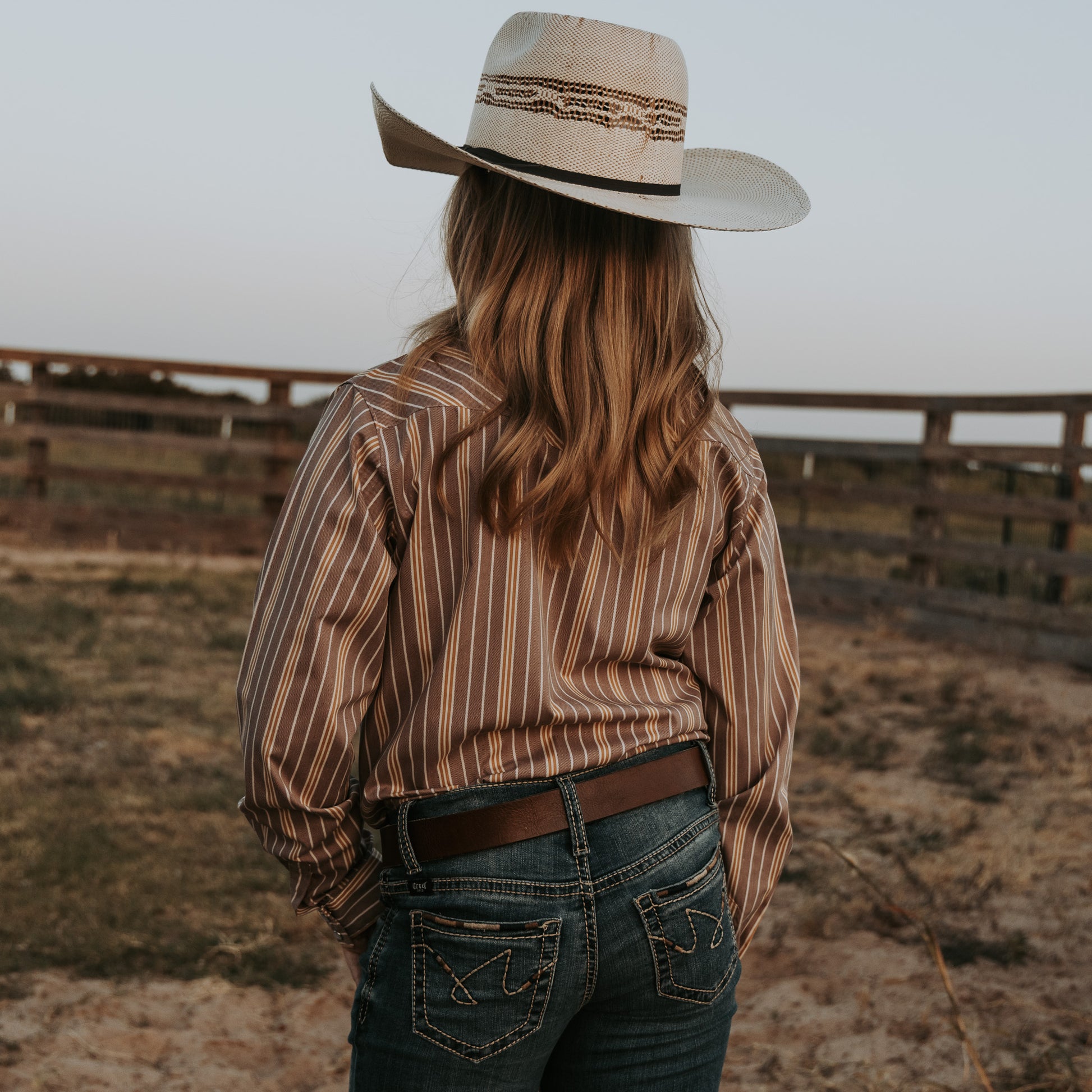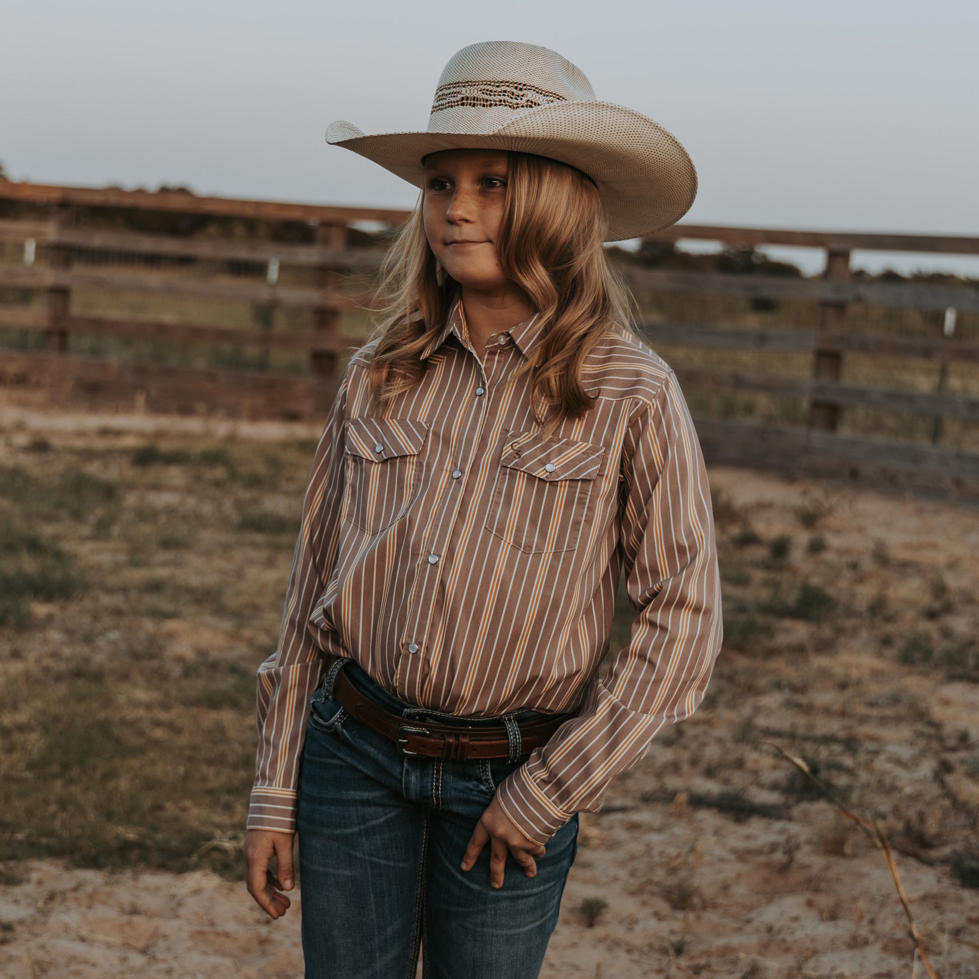 Maroon/Mustard Stripe Long Sleeve Pearl Snap (Toddler-Women's)