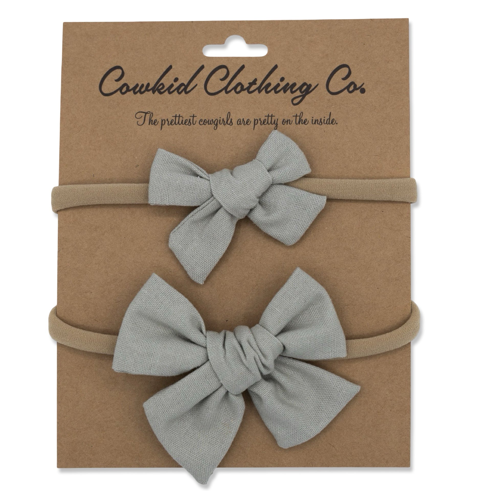 The sweetest little classic linen bows for your little cowgirls. 2 different sizes let them stay cute and stylish as they grow! Nylon band is so comfortable and stretchy for squishy little baby heads.