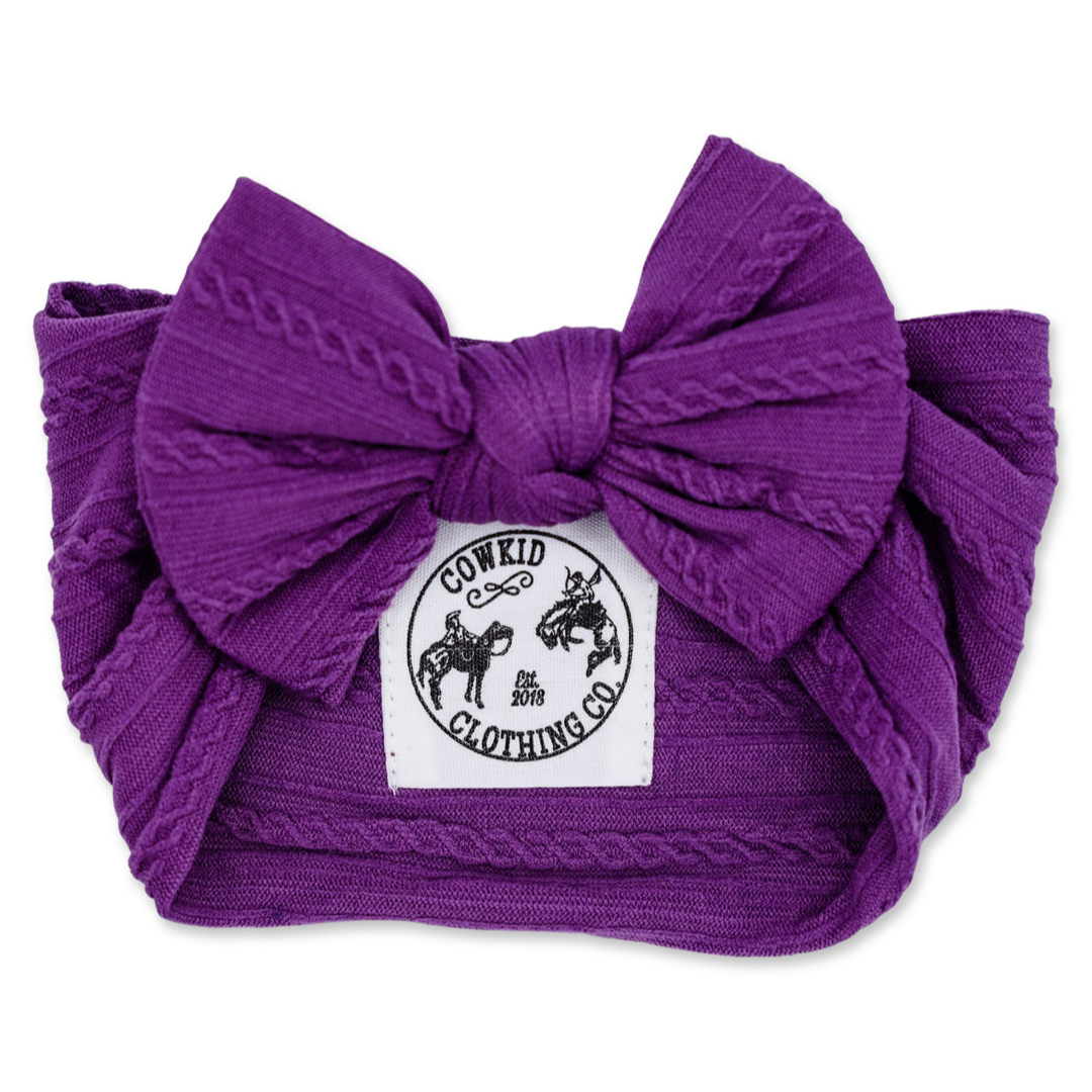 Gorgeous head wrap fits newborns up to age 3/4 due to its stretchy nature. Soft, wide band is so comfortable for squishy little baby heads. It won’t be too tight but also stays on really well due to the ribbed fabric and stretch.