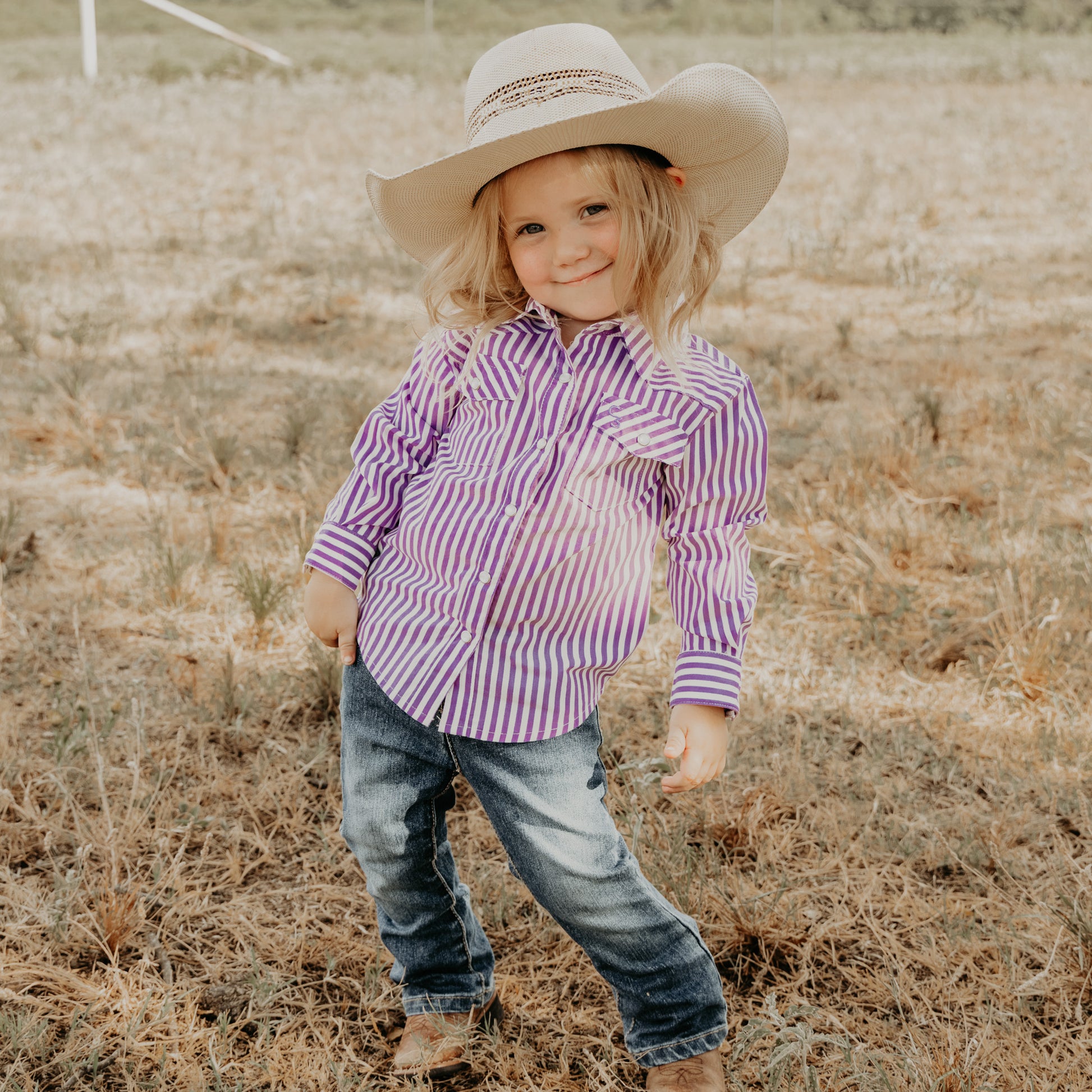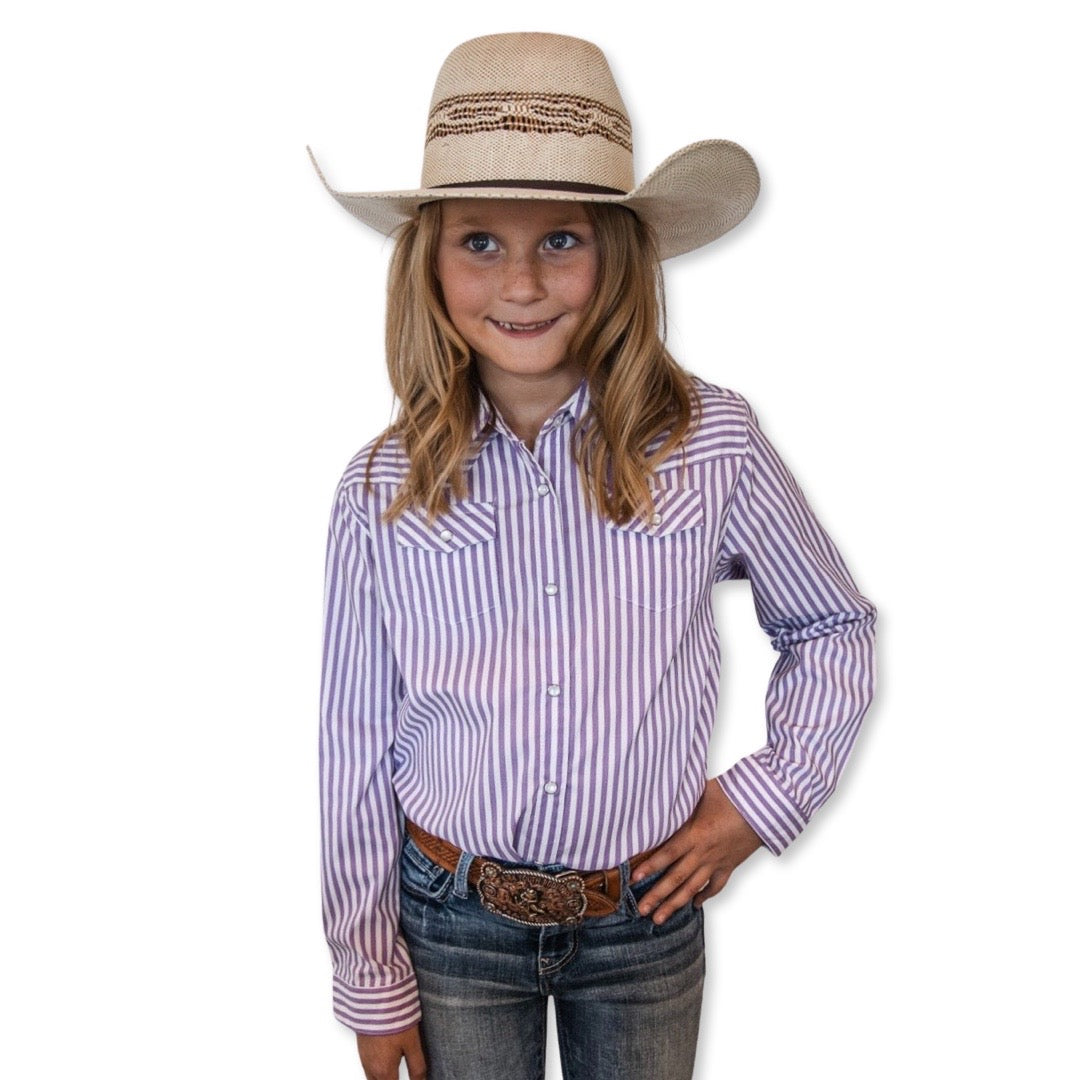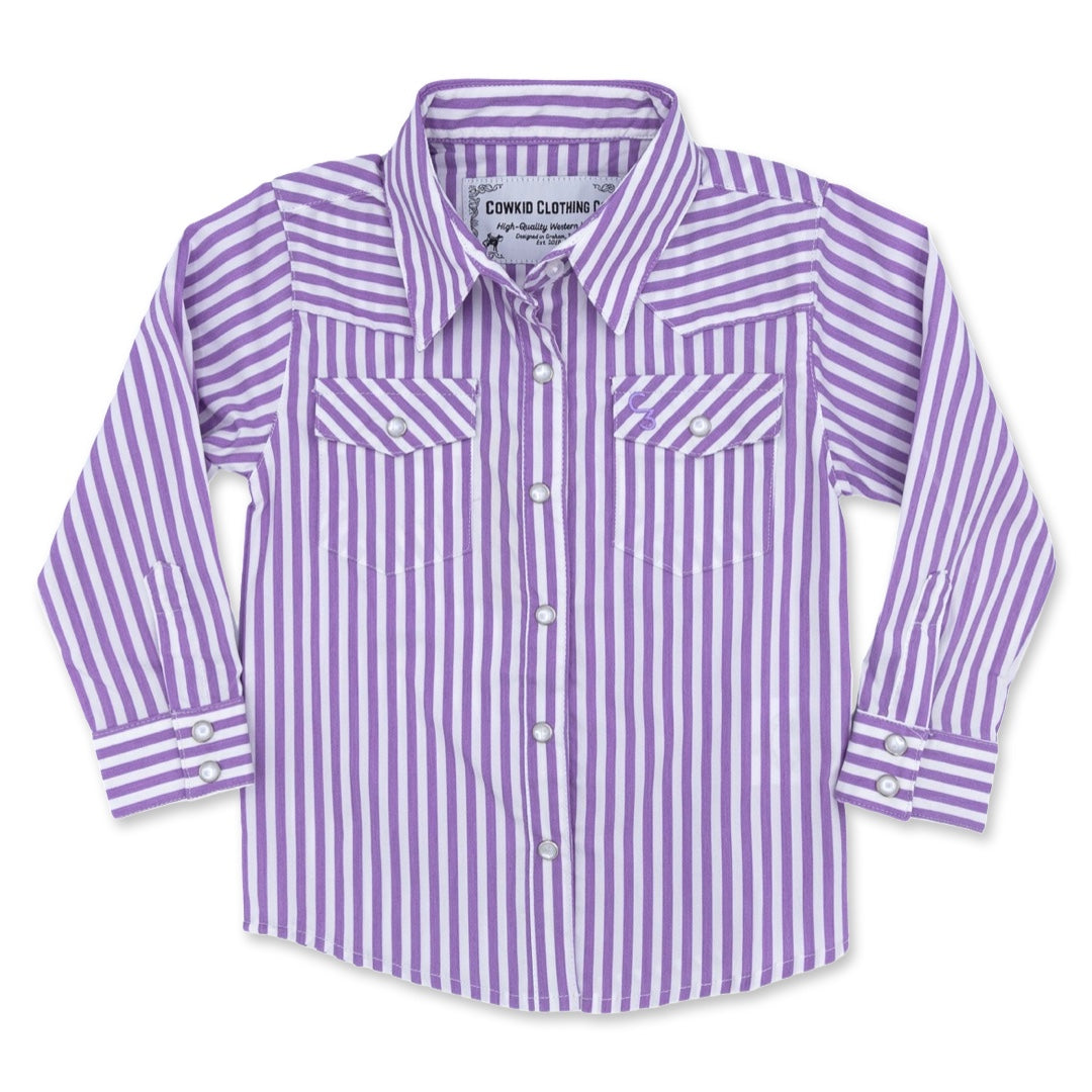 Purple & White Stripe Long Sleeve Pearl Snaps