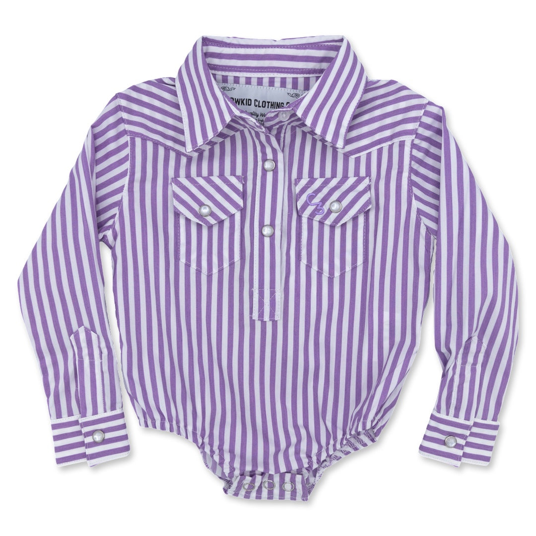 Purple & White Stripe Long Sleeve Pearl Snap Onesie