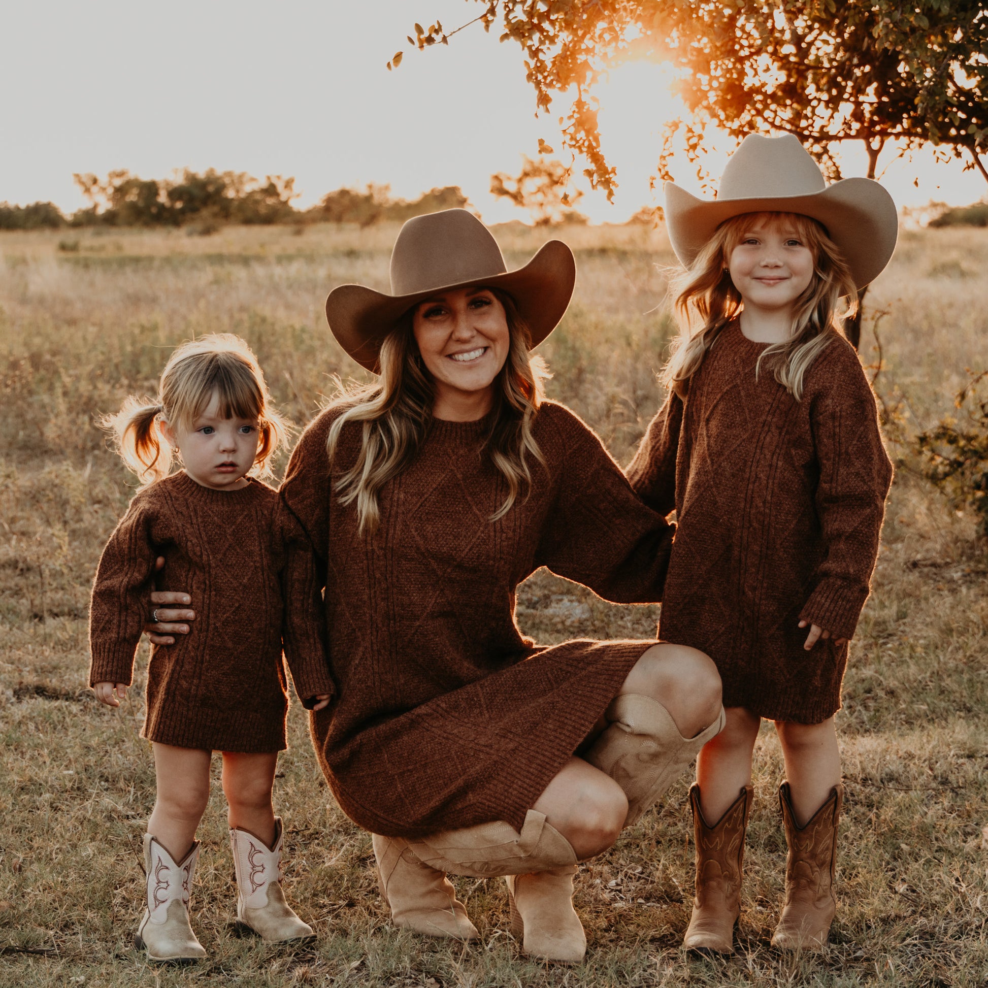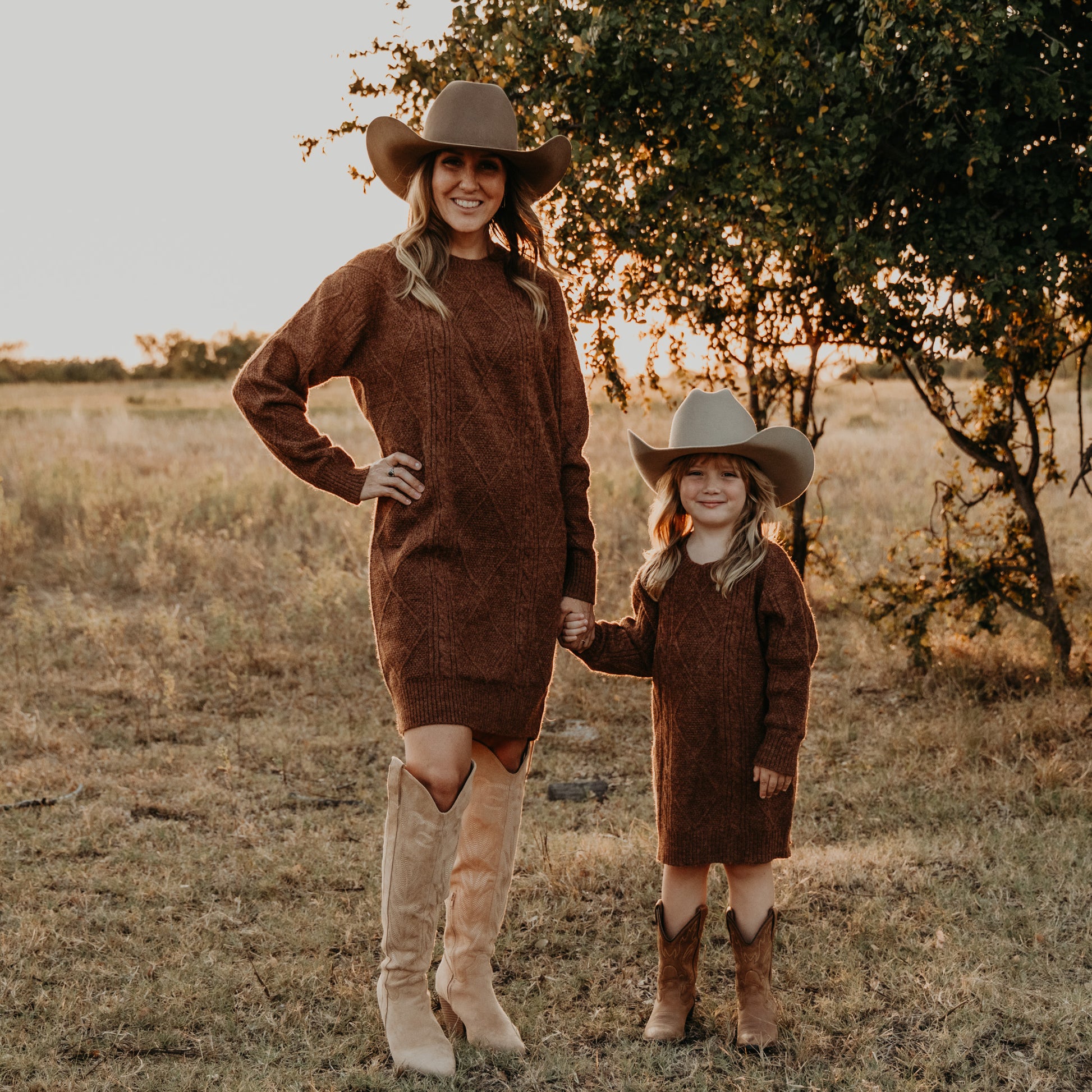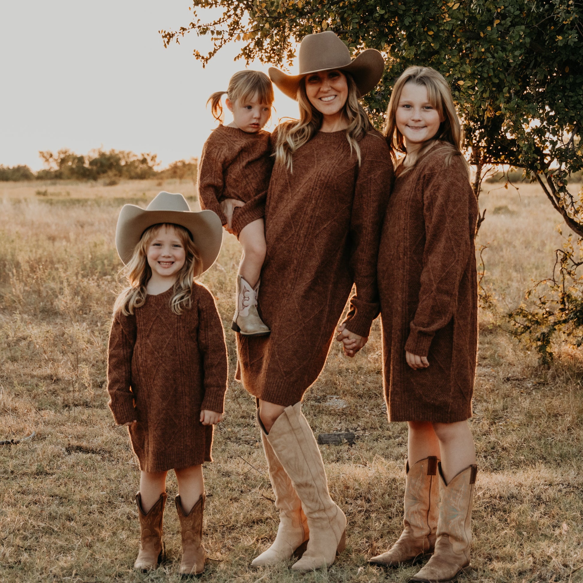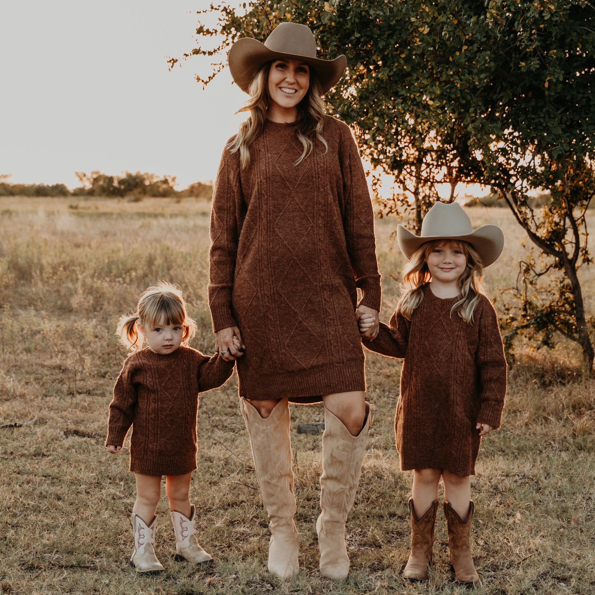 Cable Knit Sweater Dress in Rust (toddler-adult)