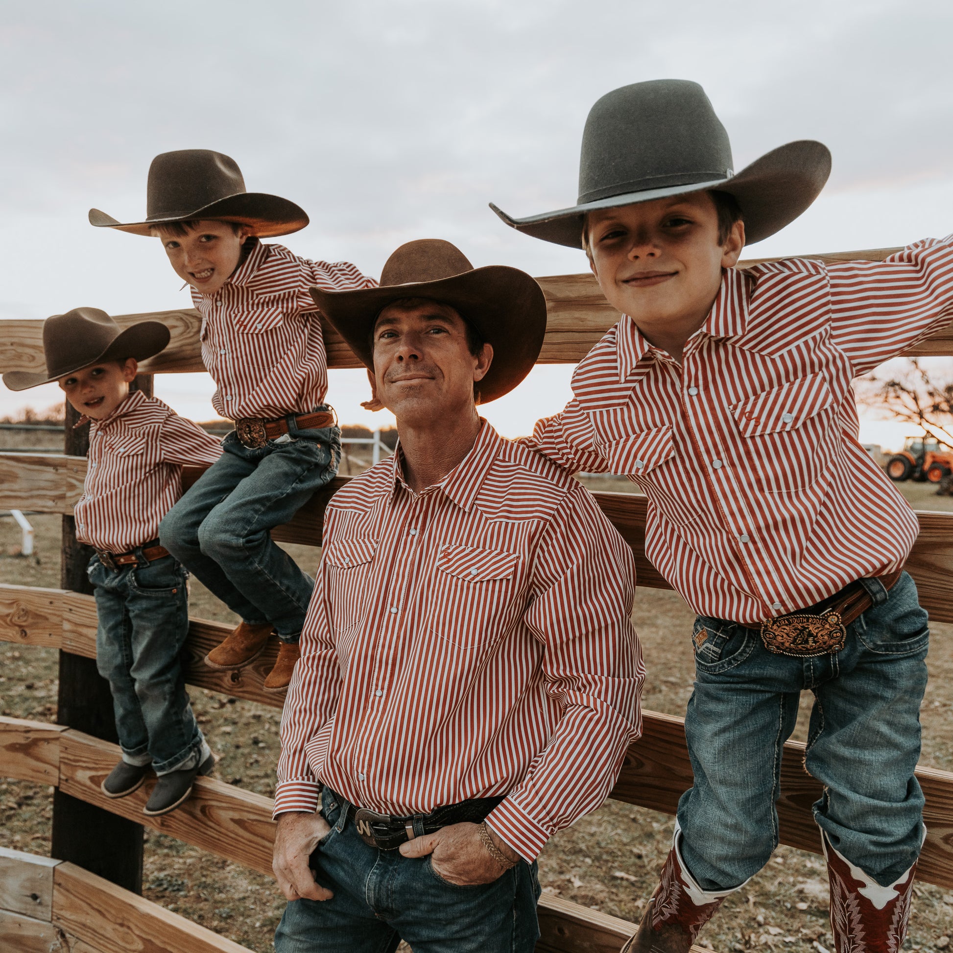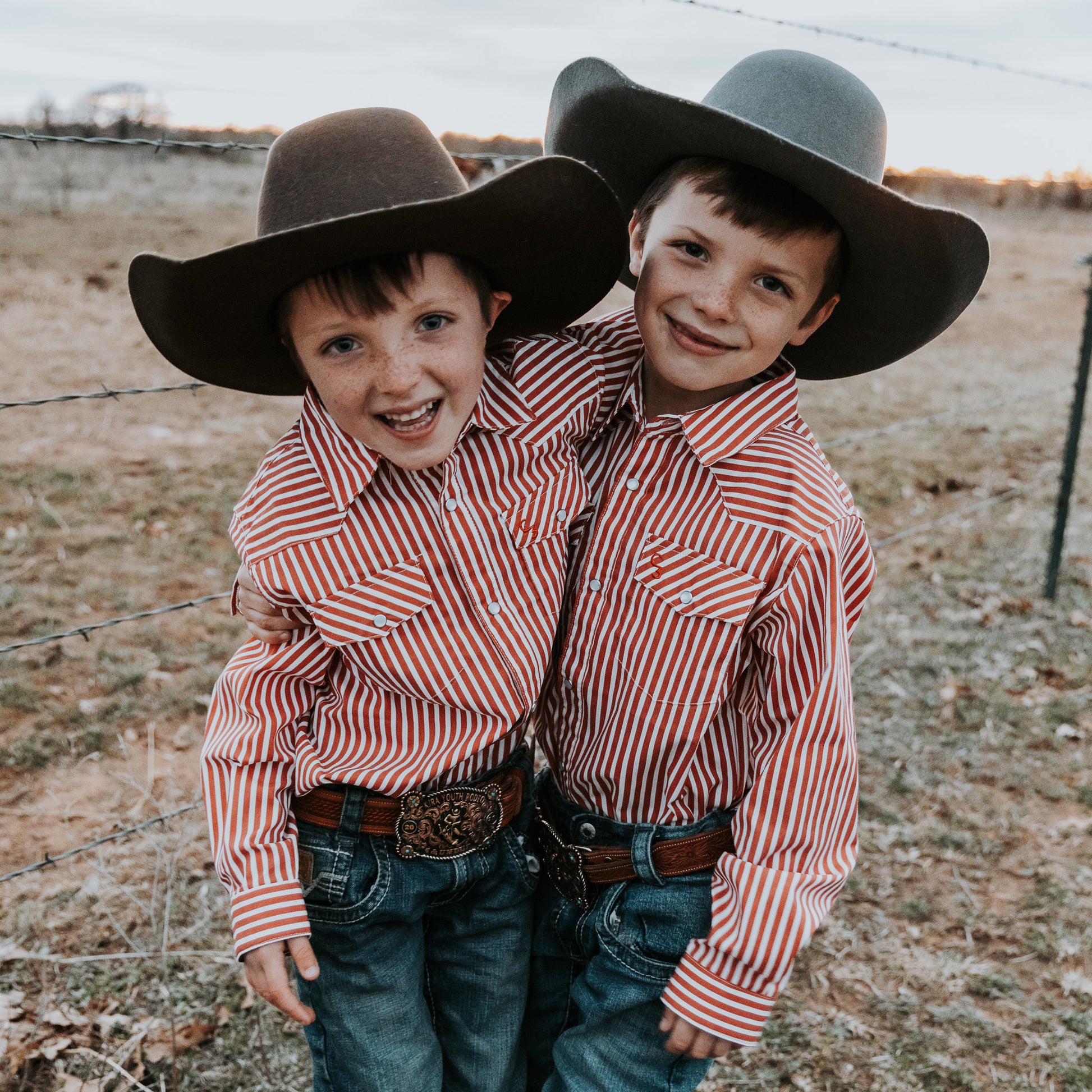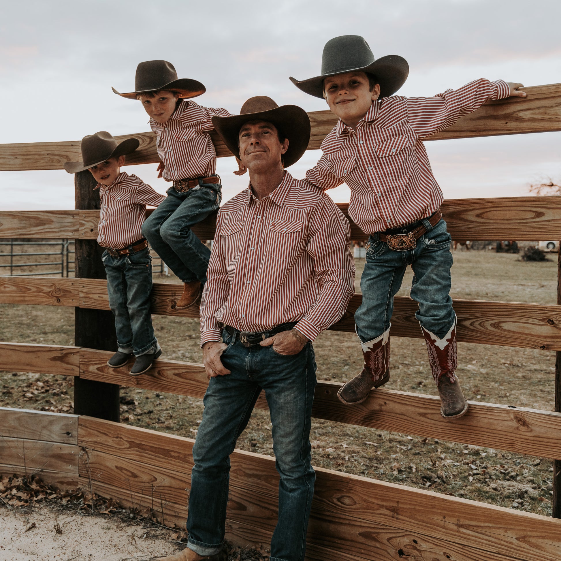 Red & White Stripe Long Sleeve Pearl Snap (Toddler-Adult)