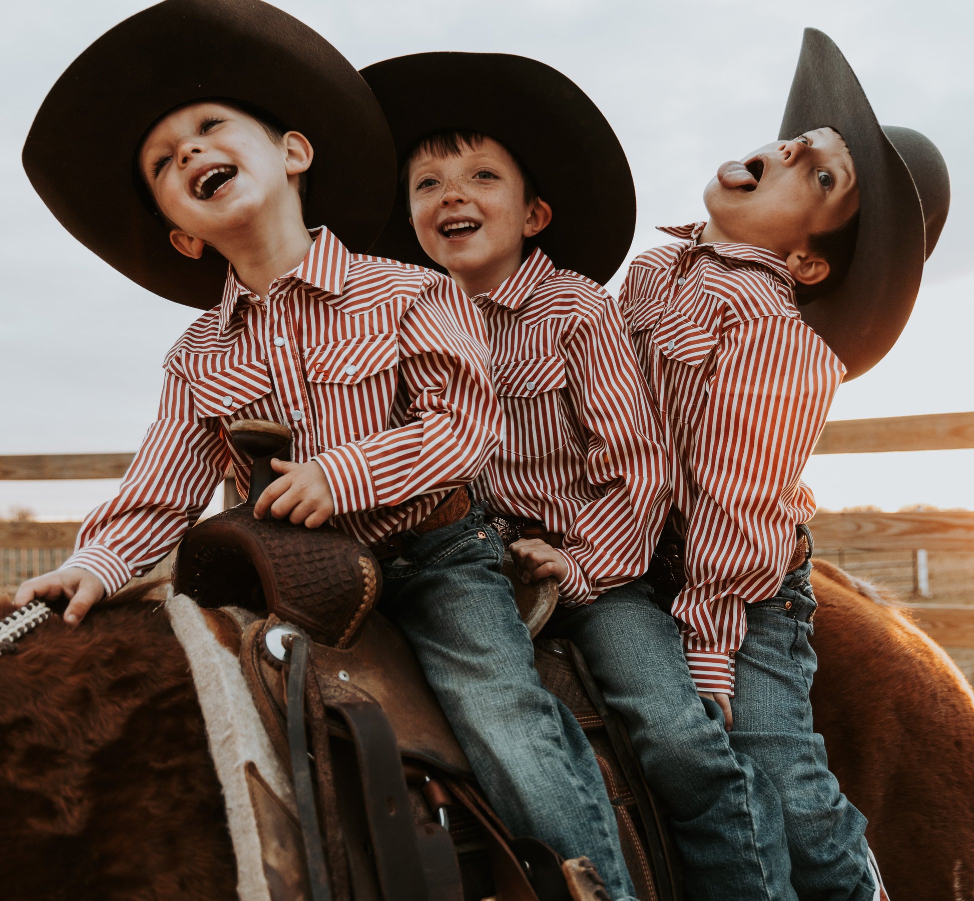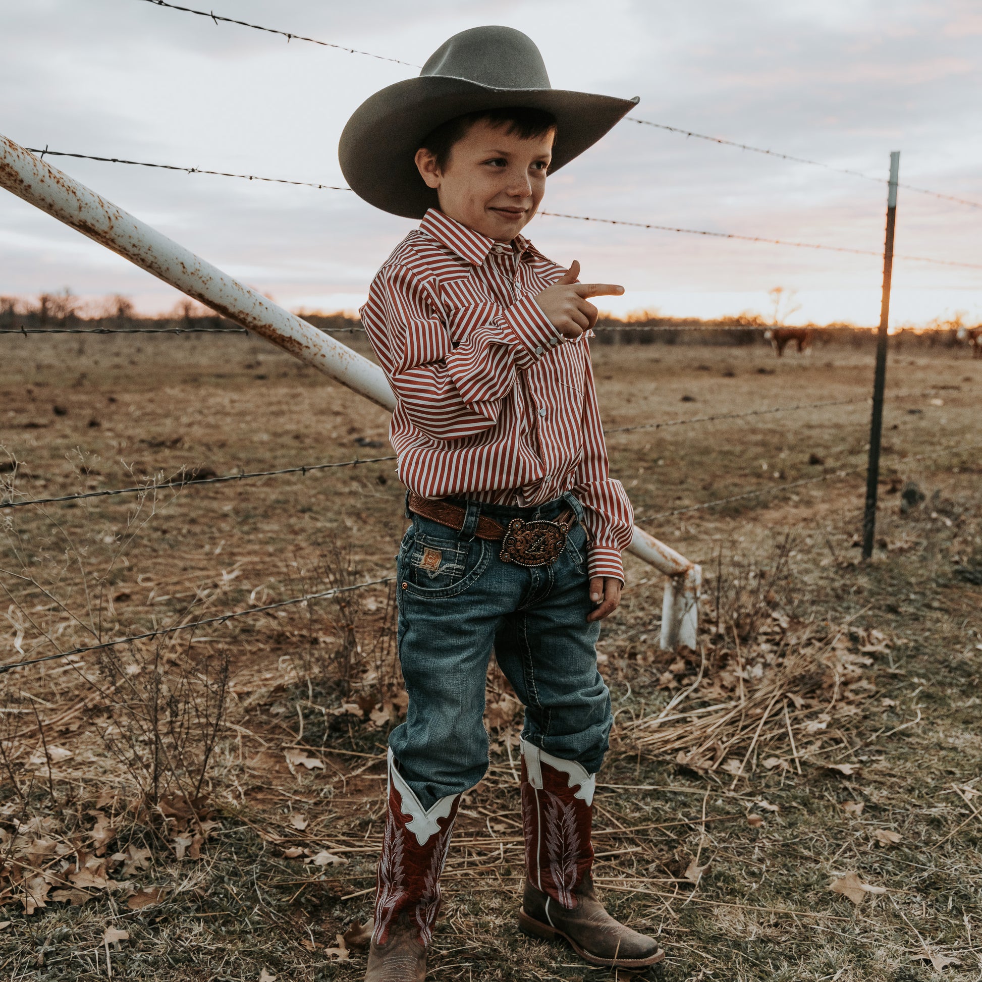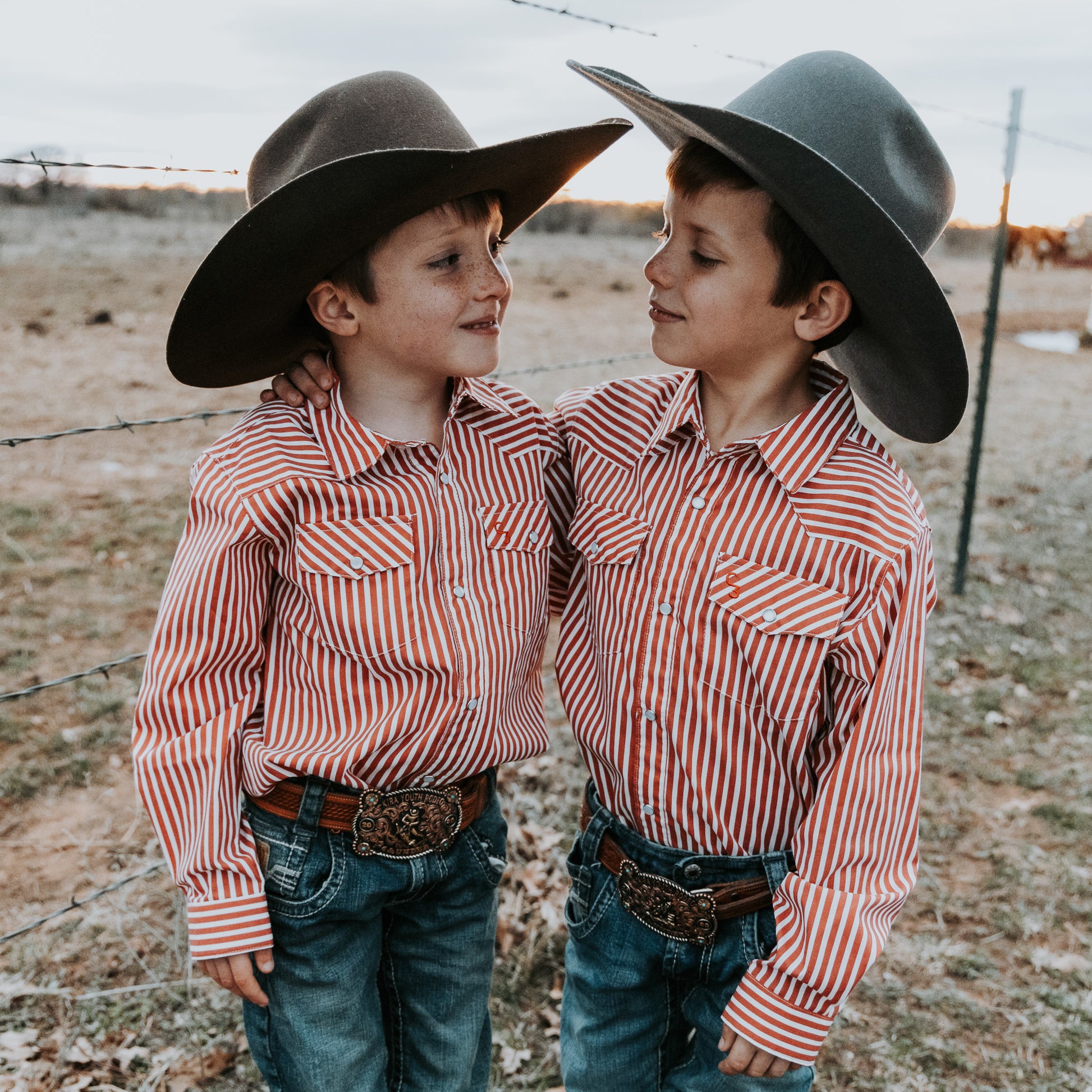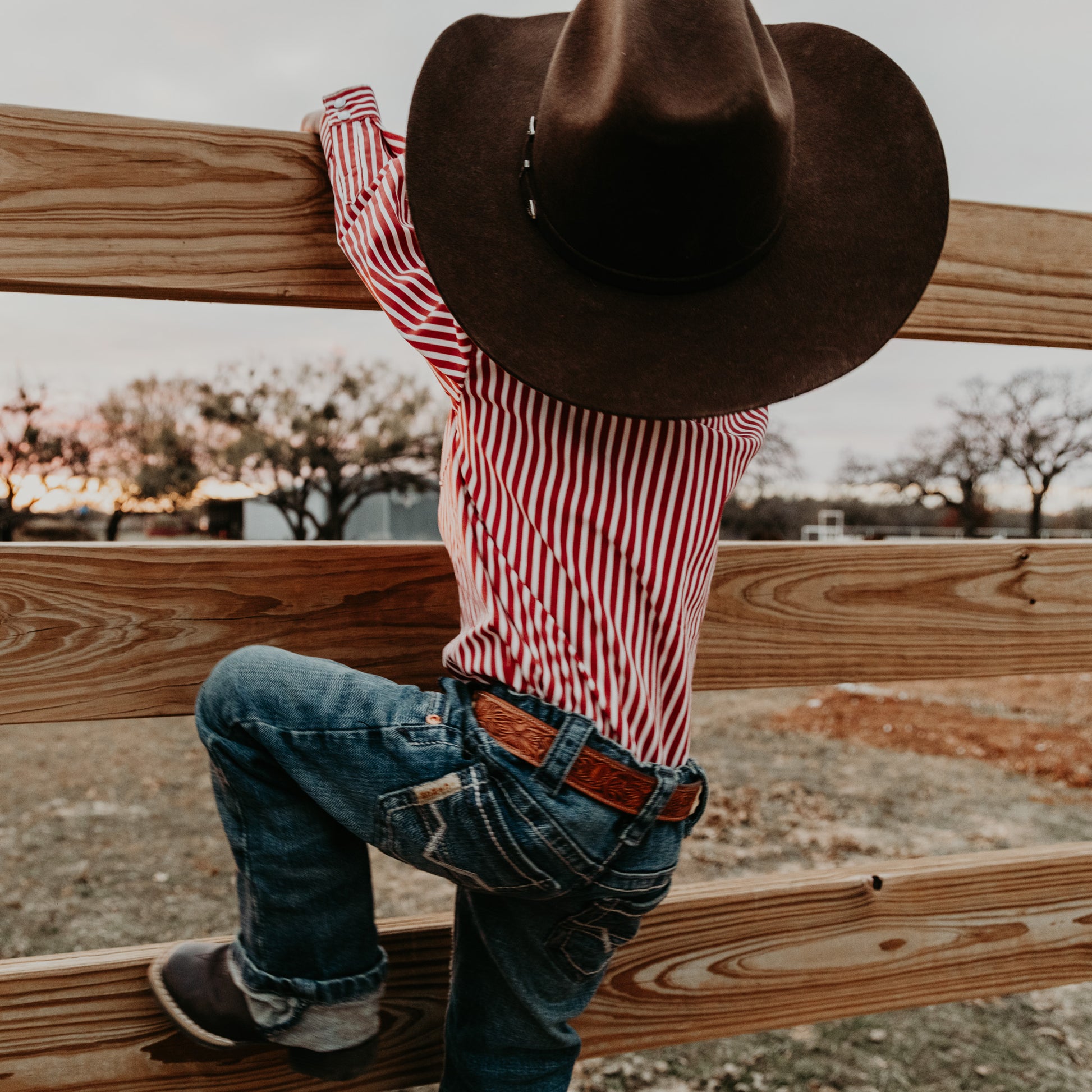 Red & White Stripe Long Sleeve Pearl Snap (Toddler-Adult)