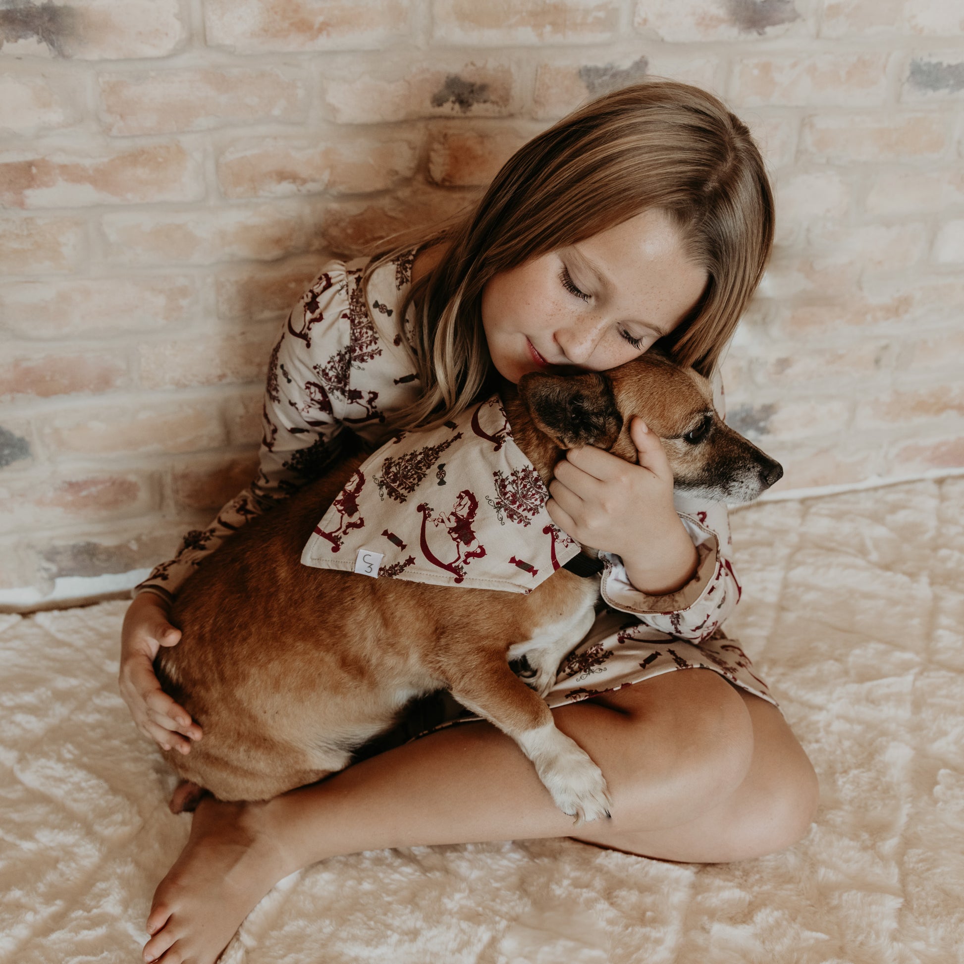 Match your cute pups from little to big! Washable cotton bandana is removable. Comes with black collar with leash clip and snap.