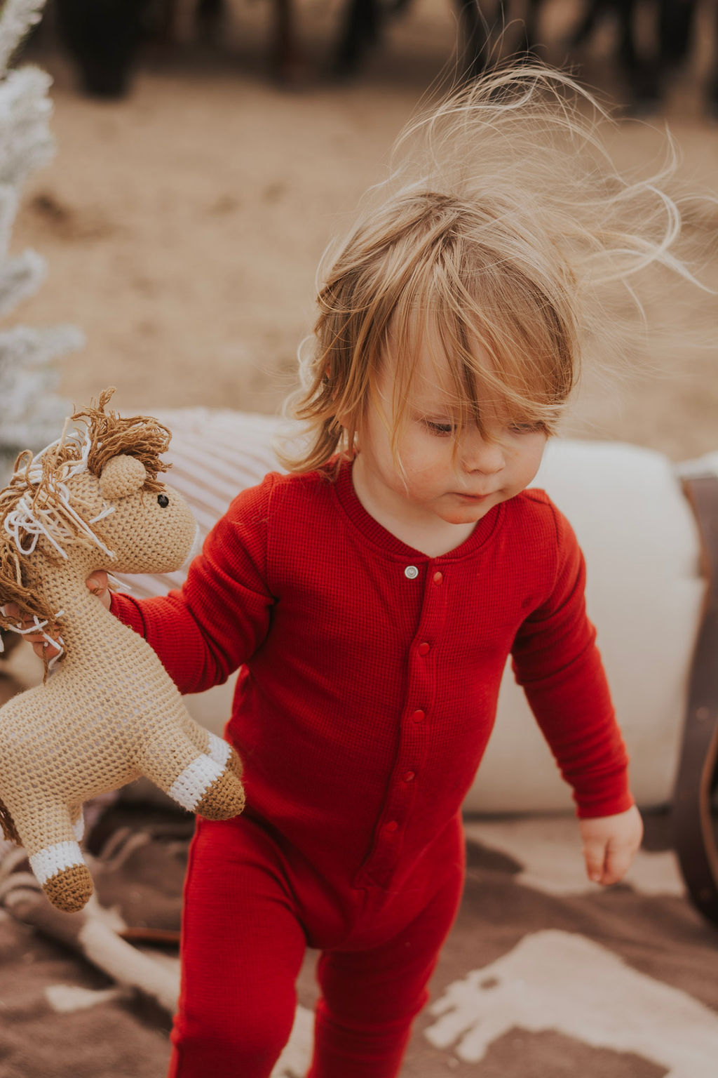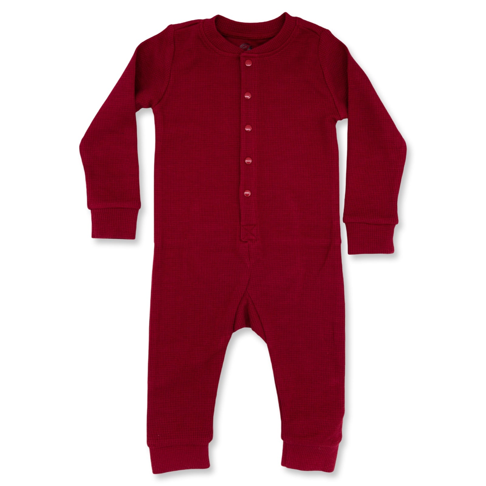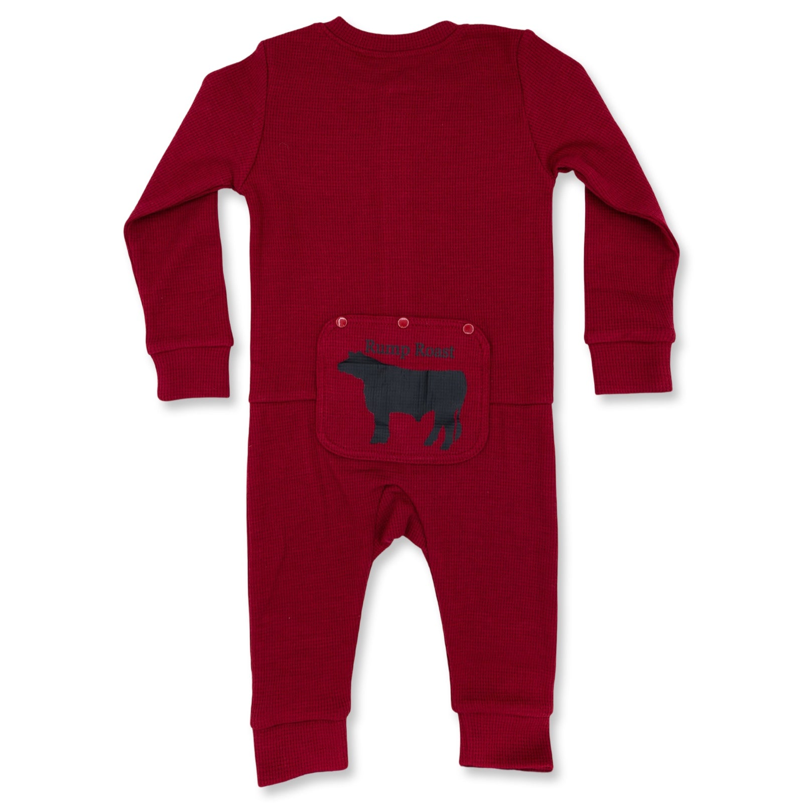 Red Waffle Long John Set with Butt Flap / Rump Roast (Infant-Adult)