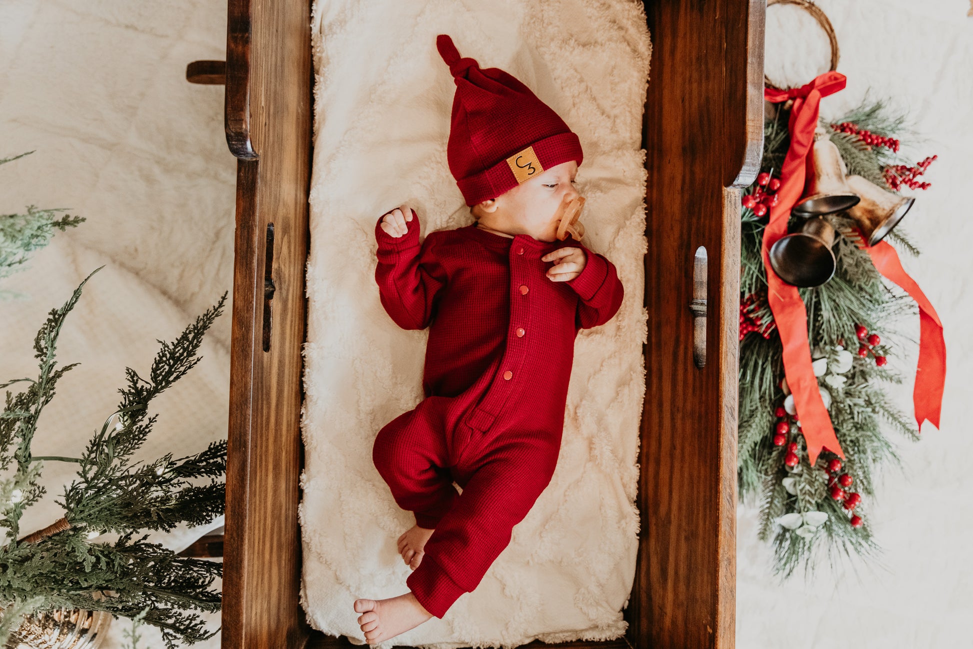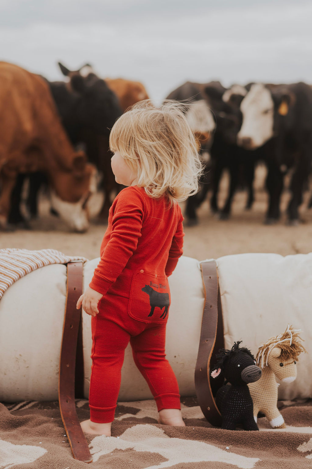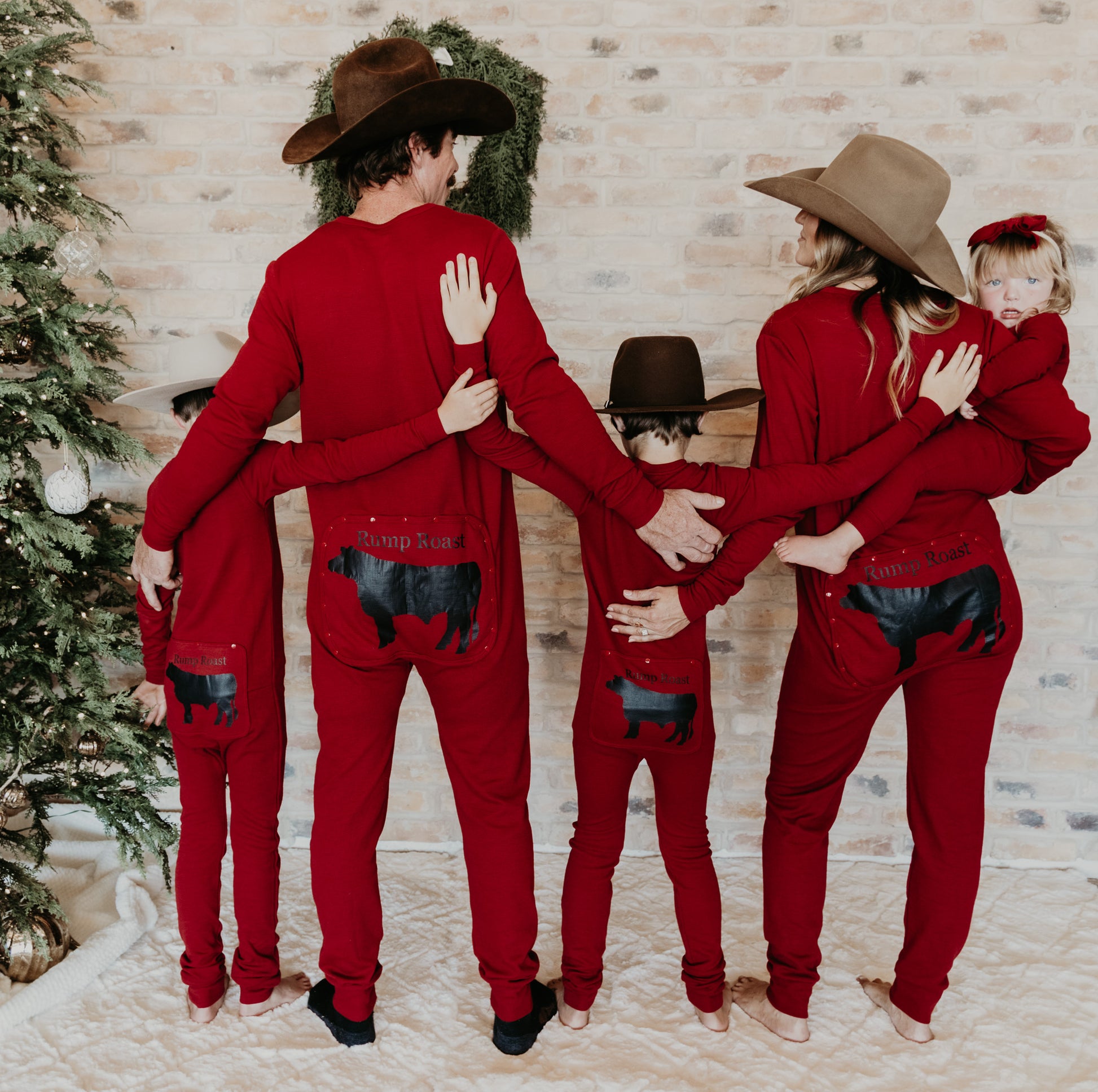 Red Waffle Long John Set with Butt Flap / Rump Roast (Infant-Adult)