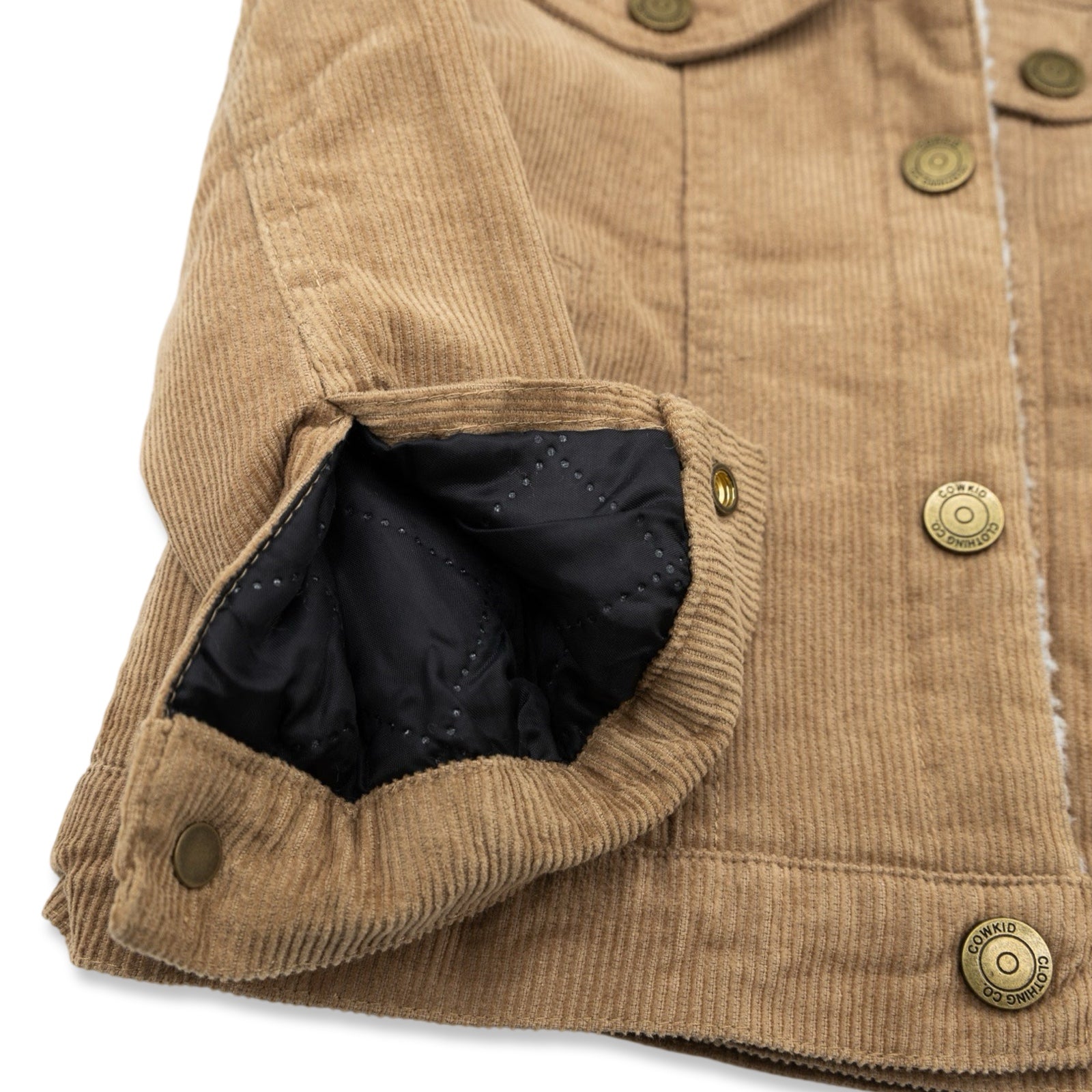 Amazing material, soft, cozy, and VERY warm. This jacket is made of high quality materials and the body is fully lined with sherpa. Smaller sizes are true to size. 10/12, 14/16 recommend sizing up one size. Sleeves are lined with warm satin lining.