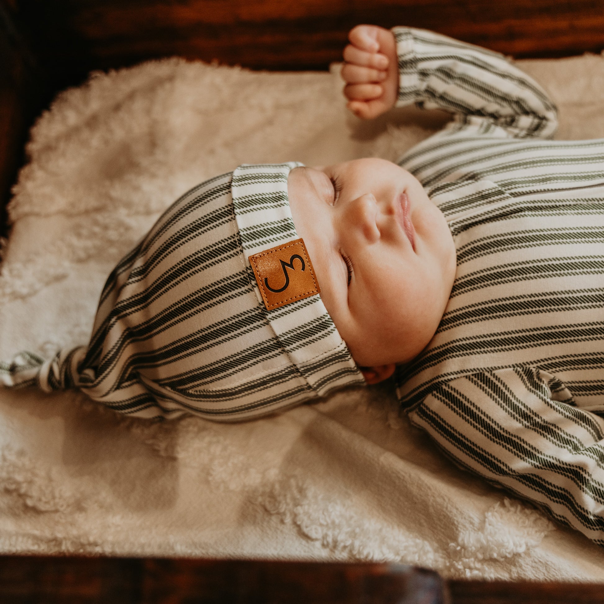 The perfect little newborn hat to match your cute jammies! The hospital pictures and sweet pictures at home in their little outfit will be adorable! Made from an incredibly soft cotton/spandex blend with a sewn on real leather patch.