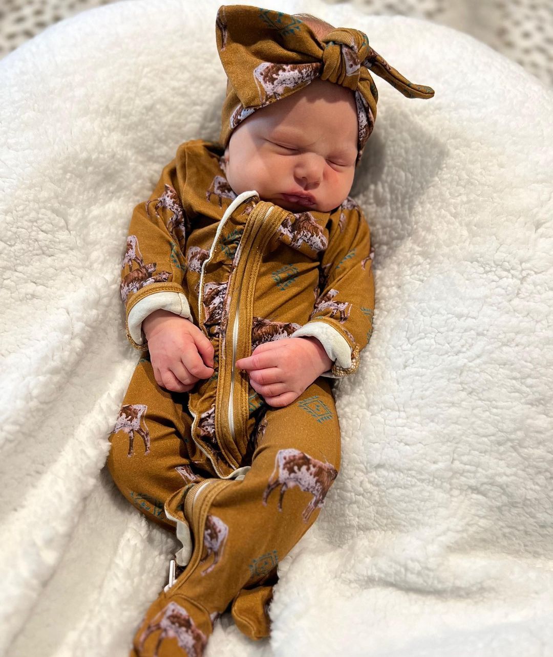 Perfect little headband to match your cute jammies! Made from an incredibly soft cotton/spandex blend. Fits newborn to about 9 months. Adjustable and can be retied to fit.