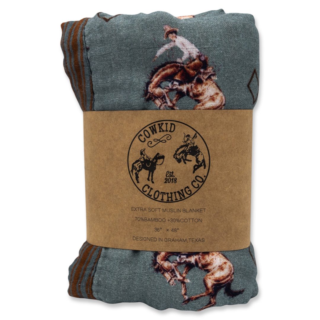 Teal Bronc Bamboo Muslin Blanket
