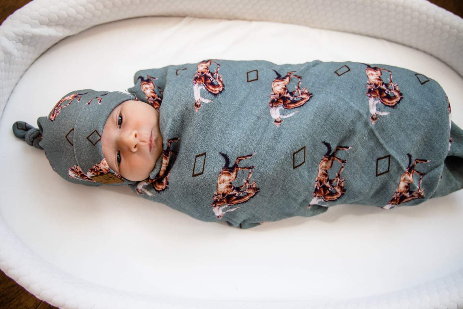 The perfect little newborn hat to match your cute jammies! The hospital pictures and sweet pictures at home in their little outfit will be adorable! Made from an incredibly soft cotton/spandex blend with a faux suede sewn on leather patch.