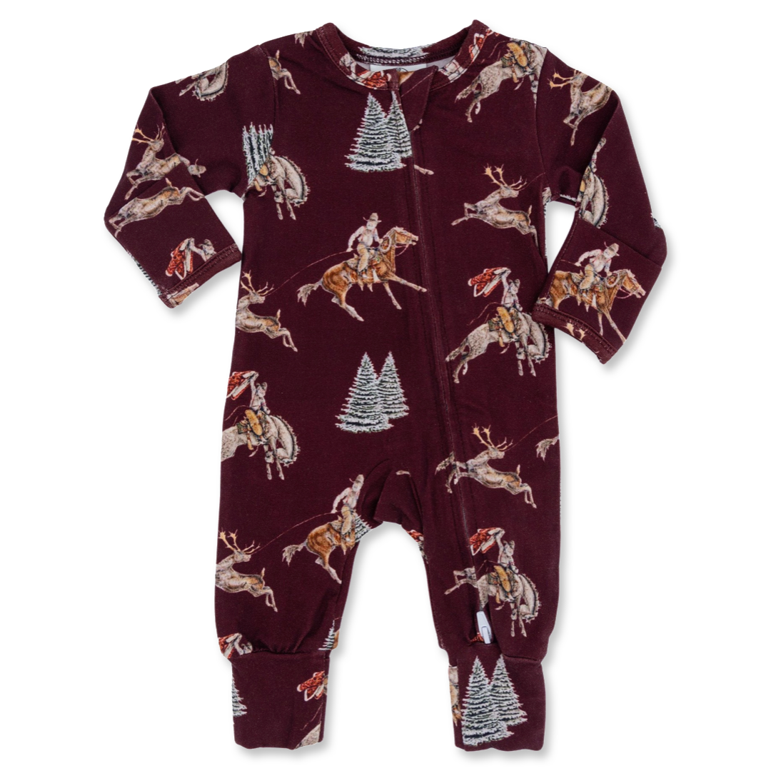 Traditional Red Cowboy Christmas Folding Feet Jammies