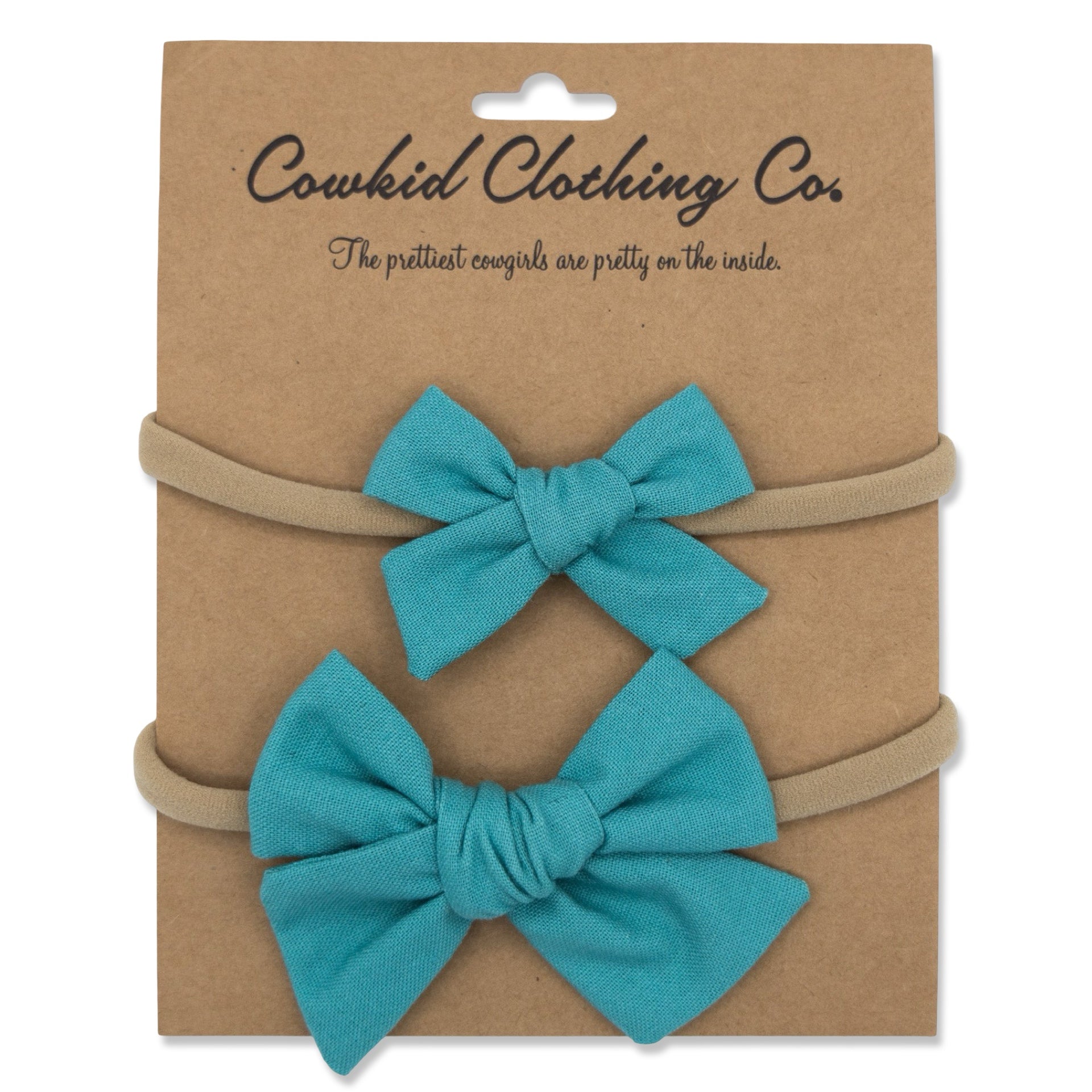 The sweetest little classic linen bows for your little cowgirls. 2 different sizes let them stay cute and stylish as they grow! Nylon band is so comfortable and stretchy for squishy little baby heads.
