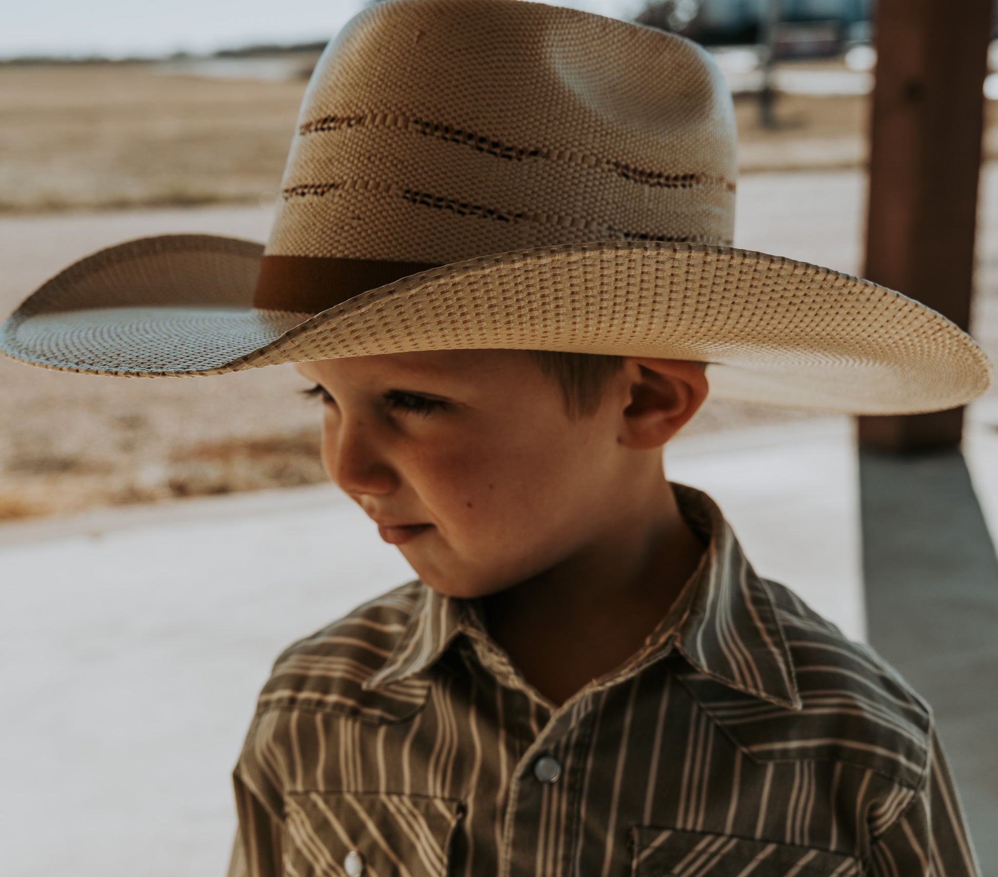 Youth western hat. Handcrafted from durable premium materials, for a quality look and feel. Perfect for work or play. Inside does have a stretch to fit elastic band.