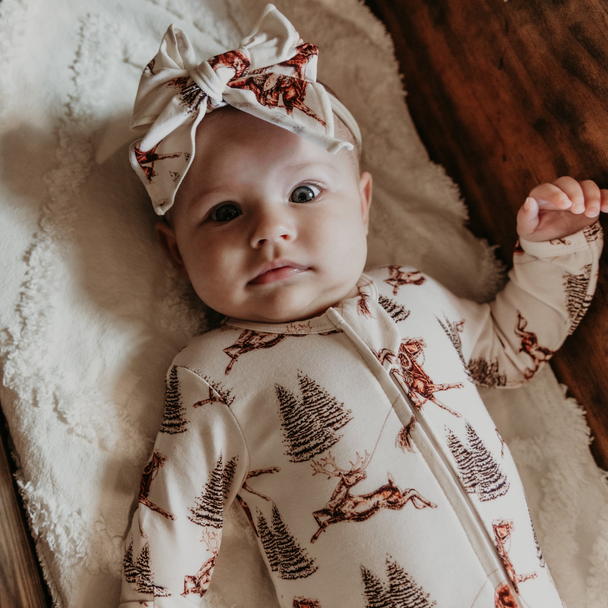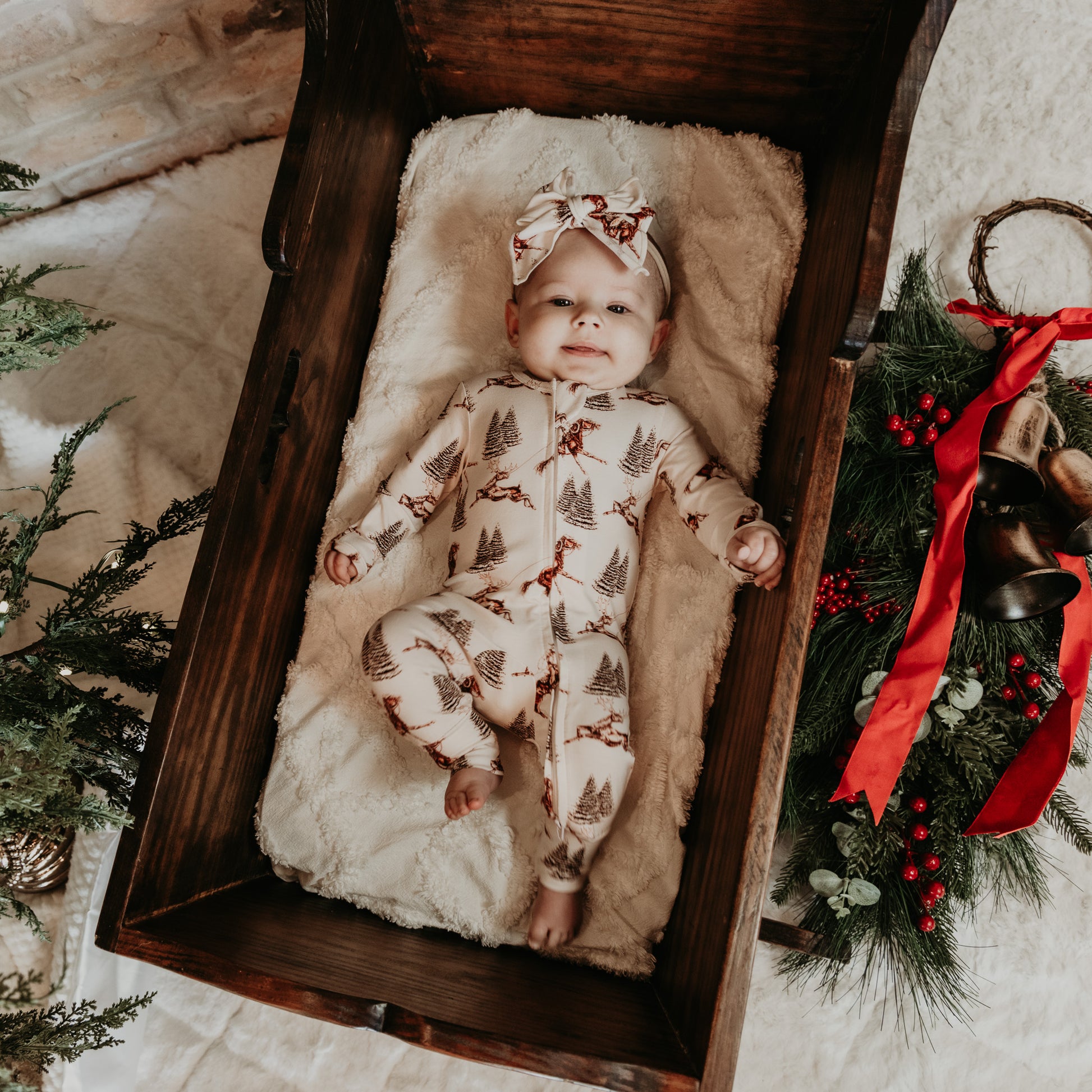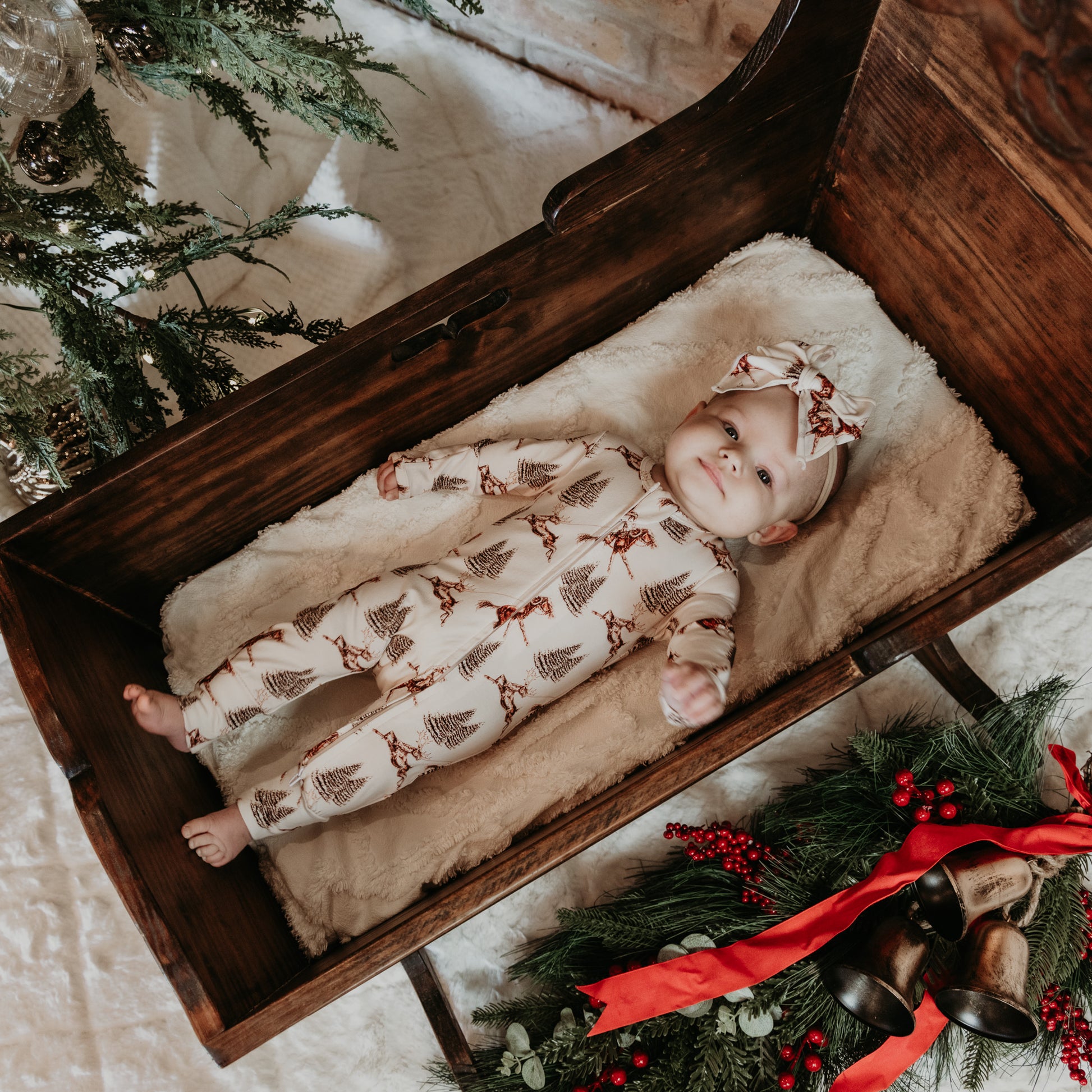 Perfect little headband to match your cute jammies! Made from an incredibly soft cotton/spandex blend and tied in a bow on a nylon stretch band. Very comfortable for heads without leaving an indention and isn't too tight. Fits newborn to about 18 months.