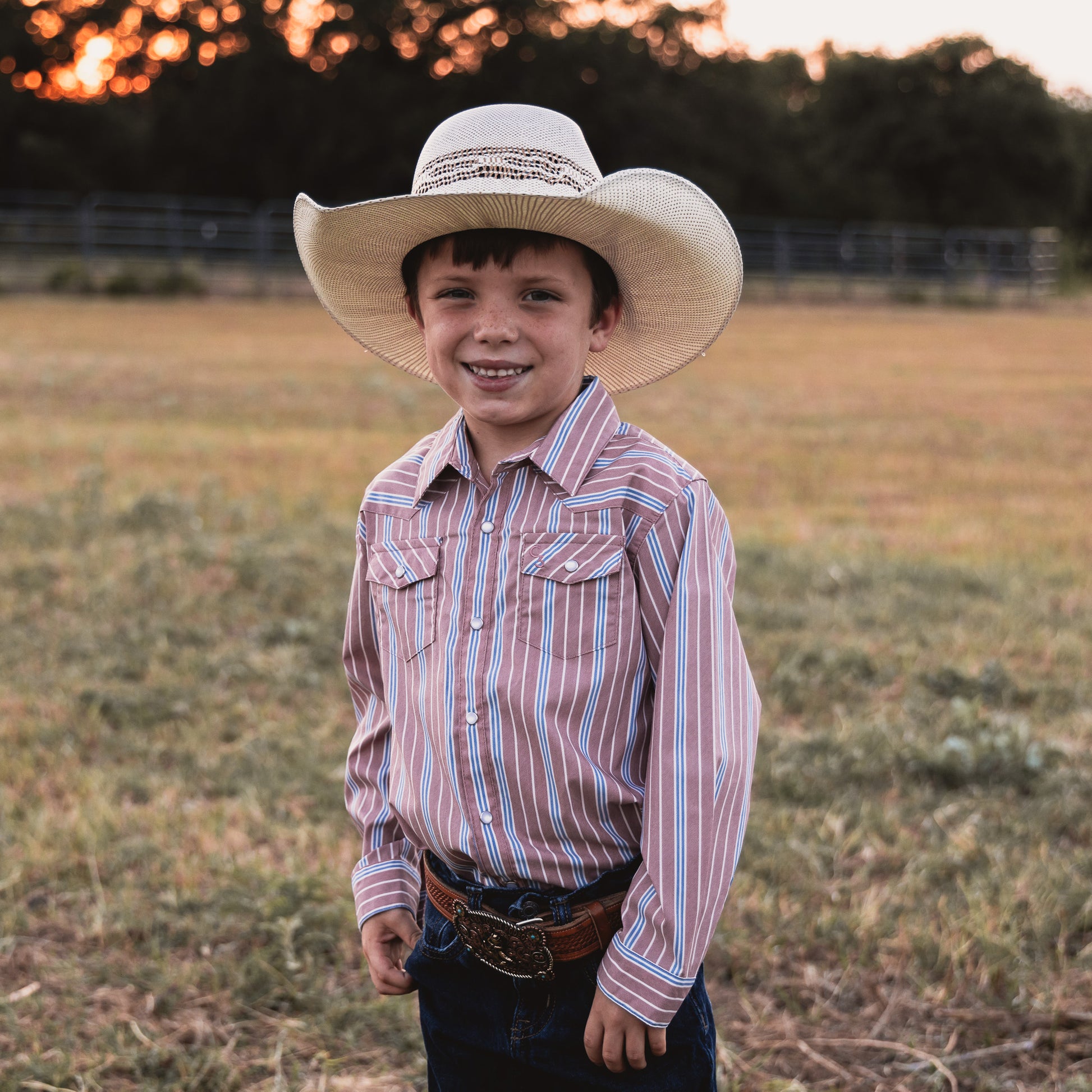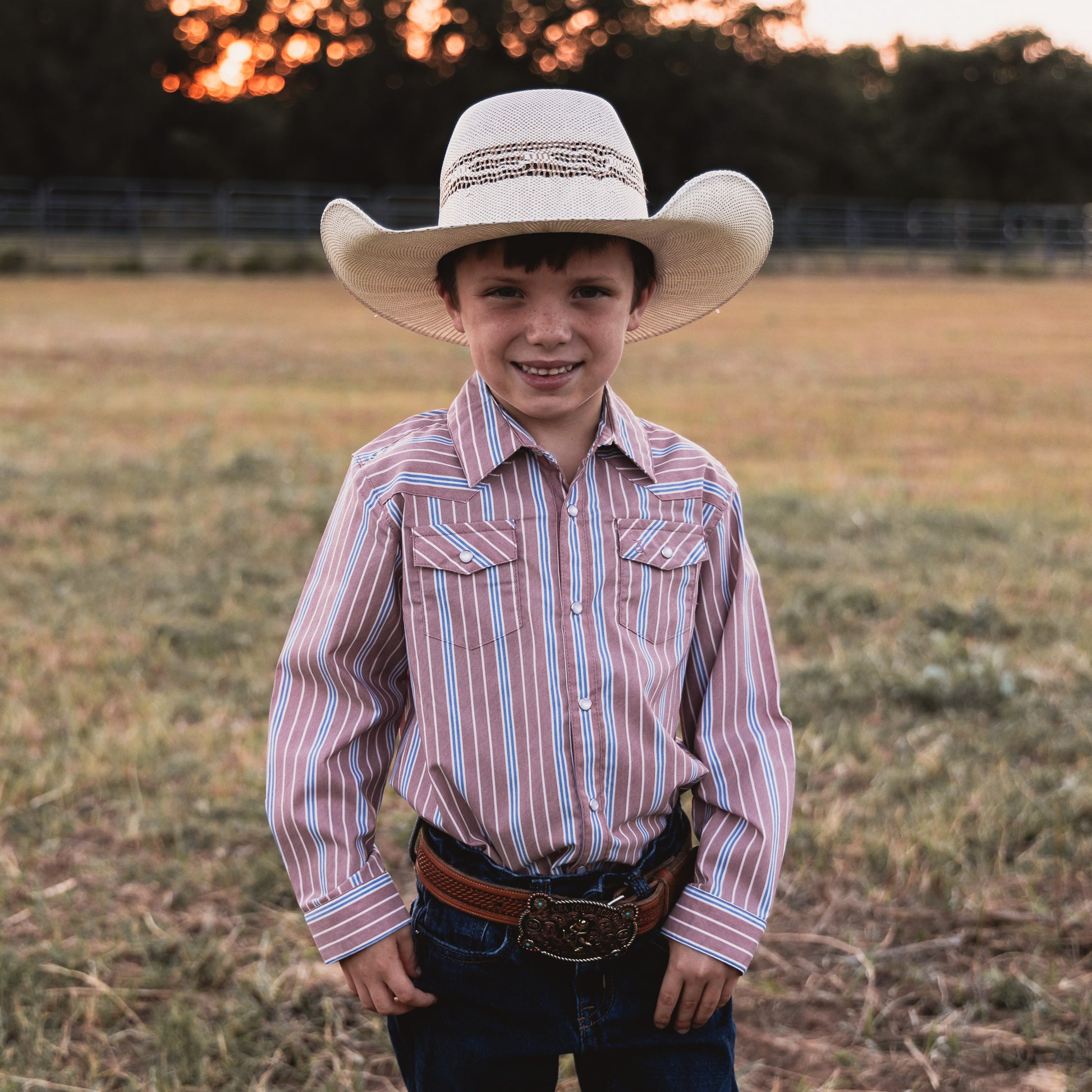 Vintage Blue and Red Stripe Long Sleeve Pearl Snap (Toddler-Adult)