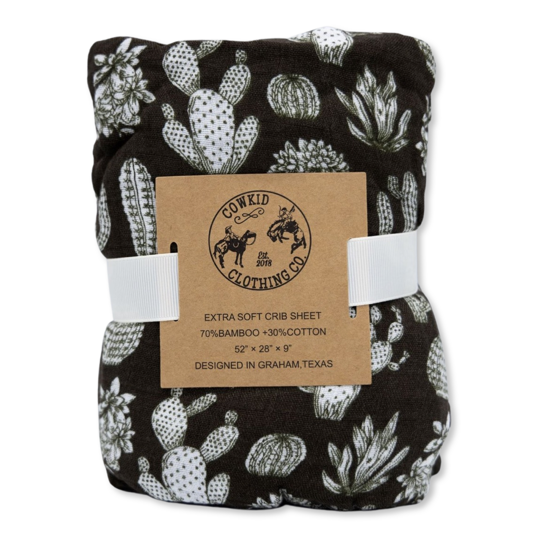 Vintage Cactus Bamboo Muslin Crib Sheet
