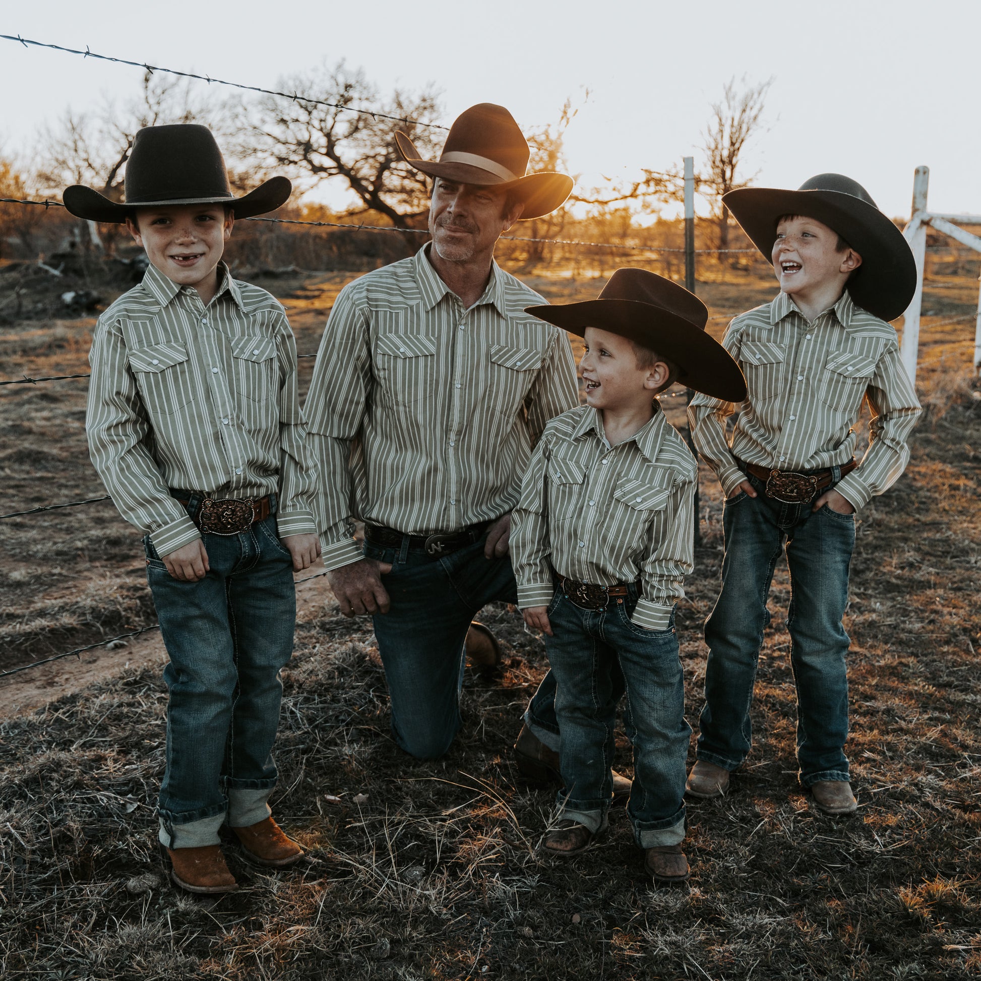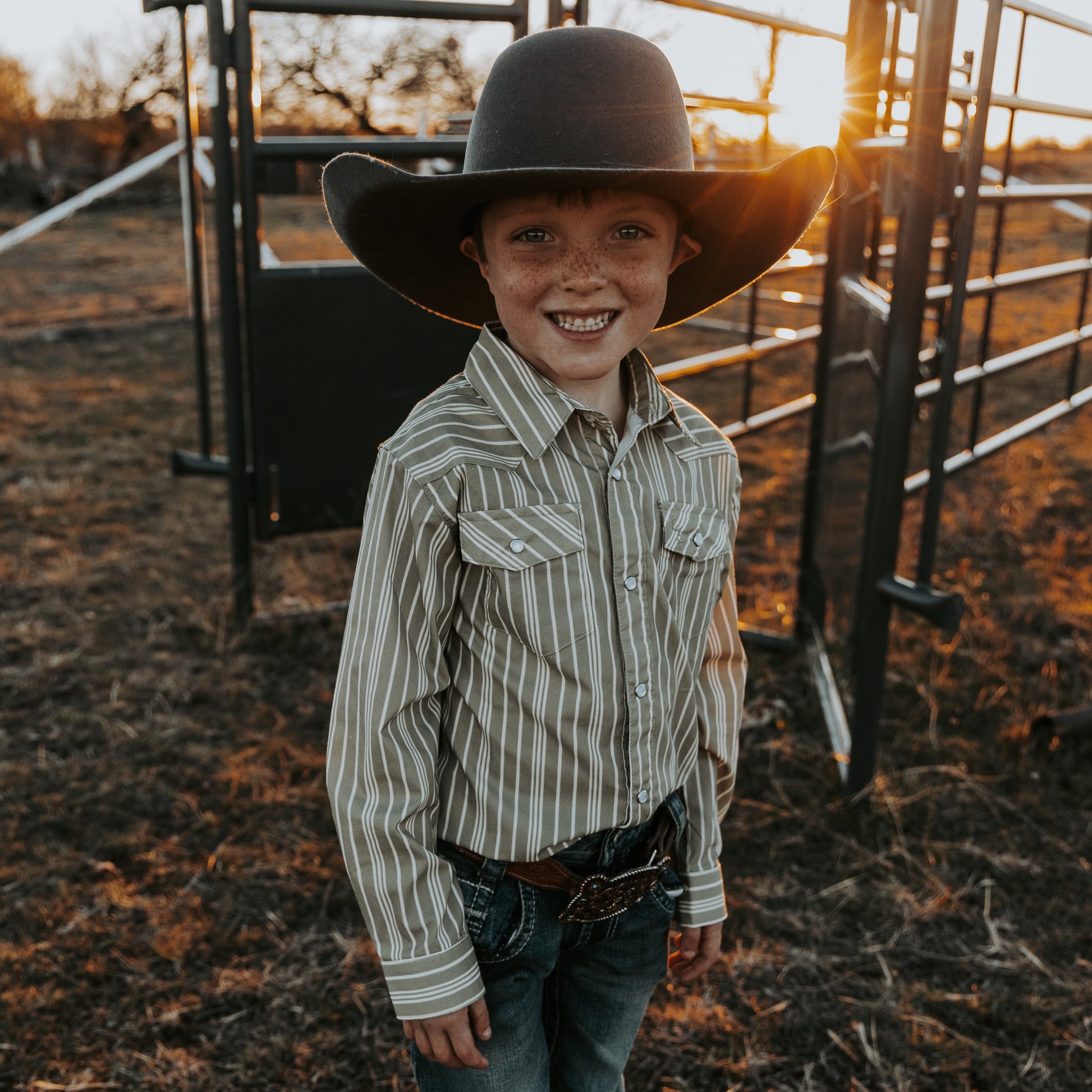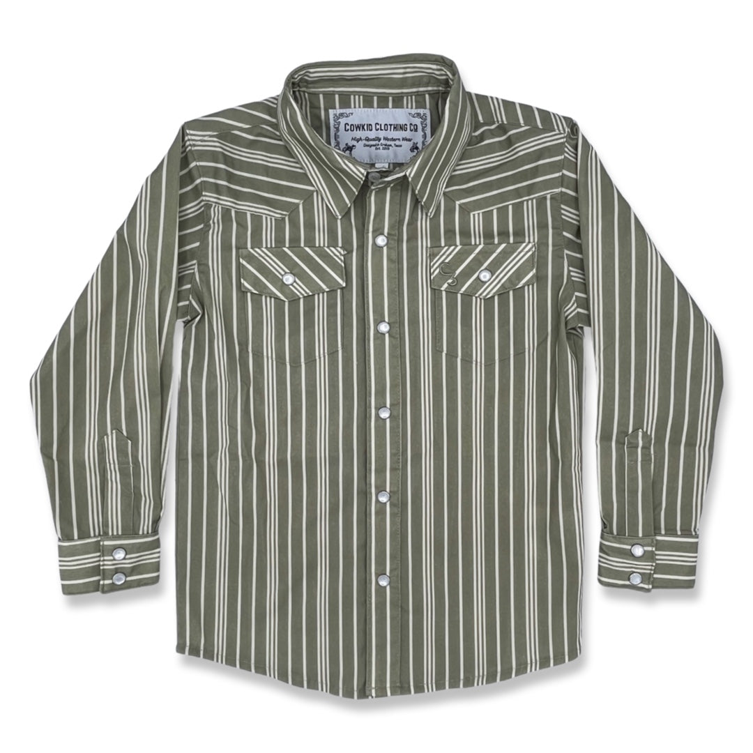 Vintage Green Stripe Long Sleeve Pearl Snap (Toddler-Adult)