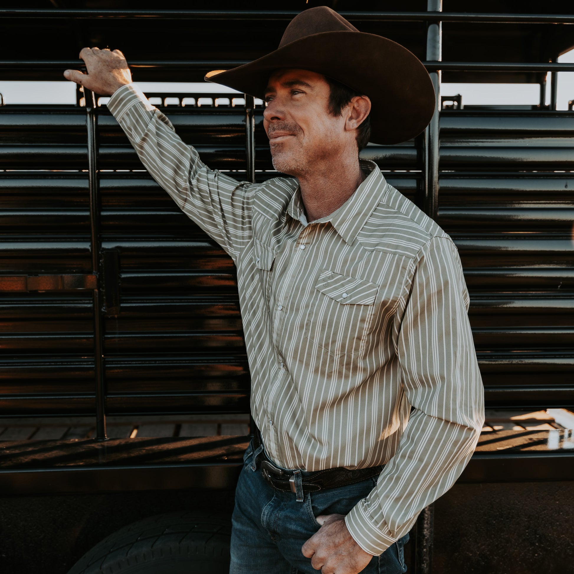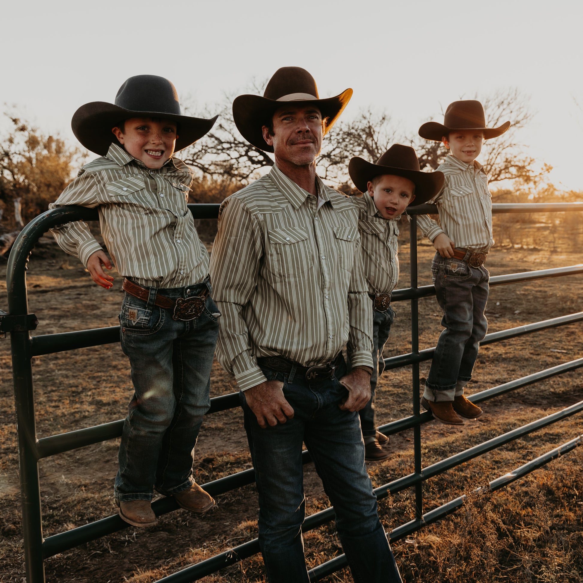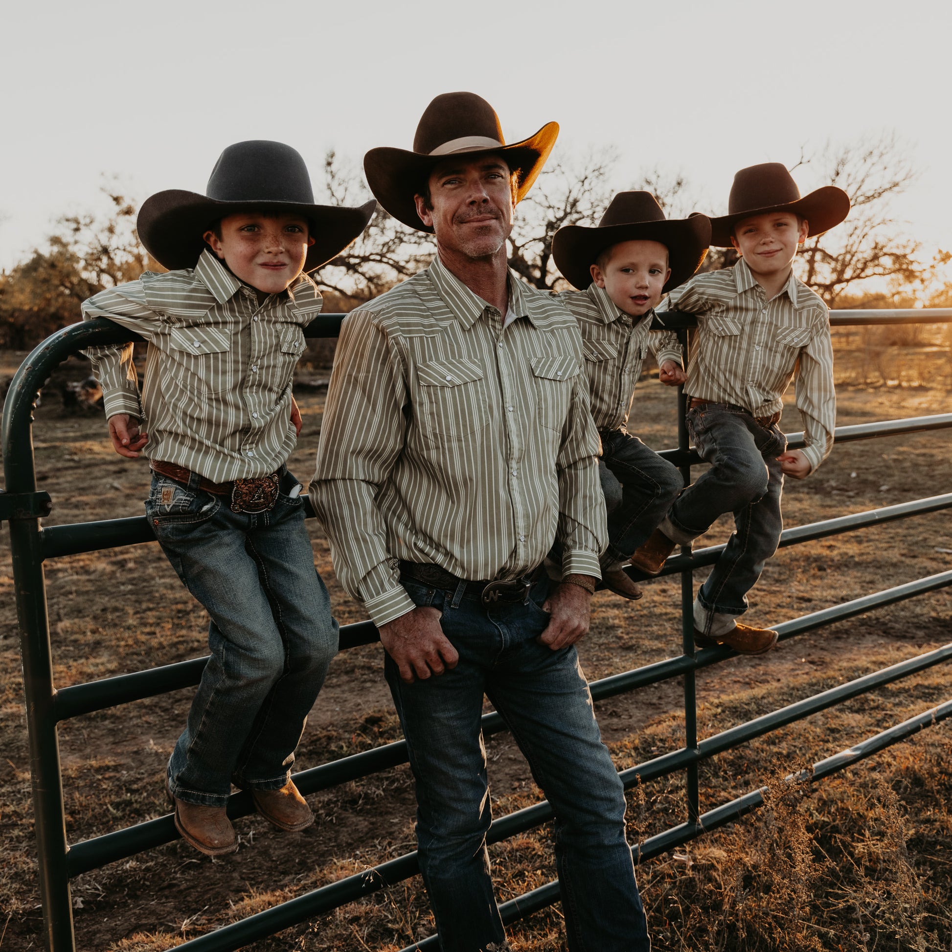 Vintage Green Stripe Long Sleeve Pearl Snap (Toddler-Adult)