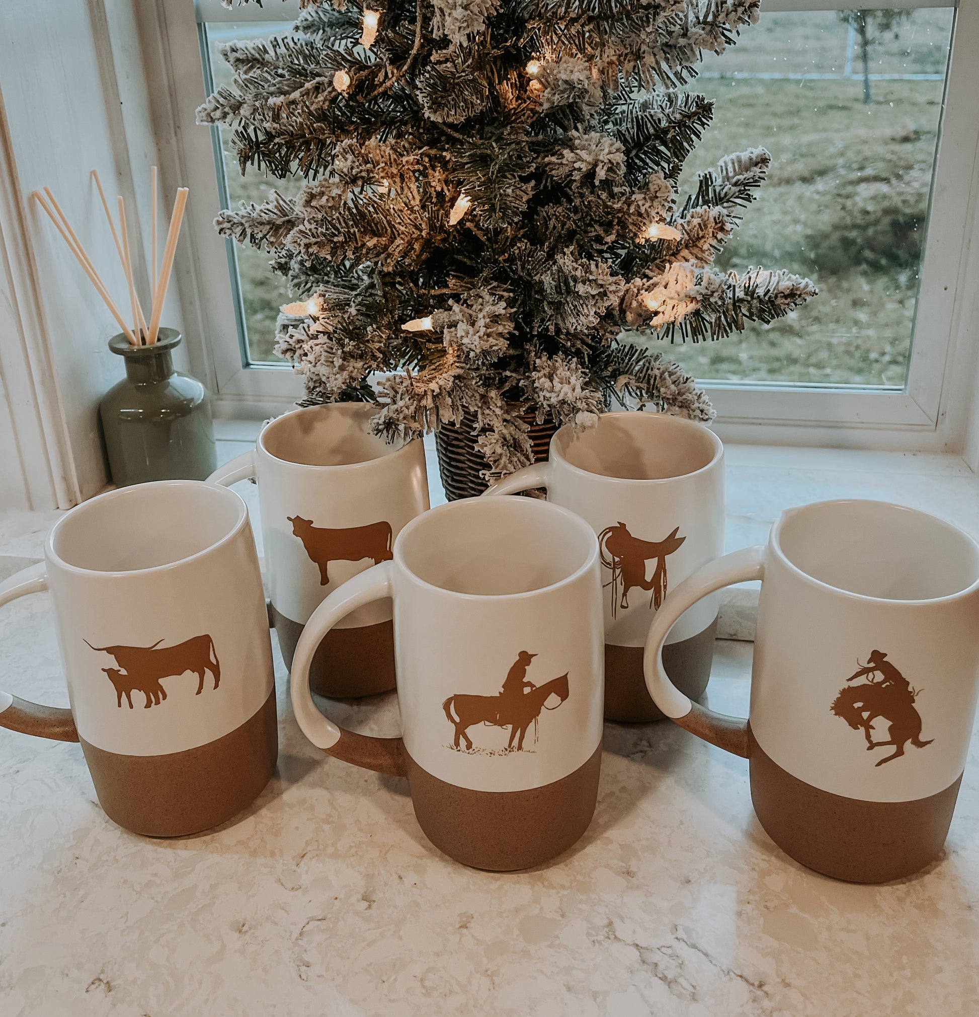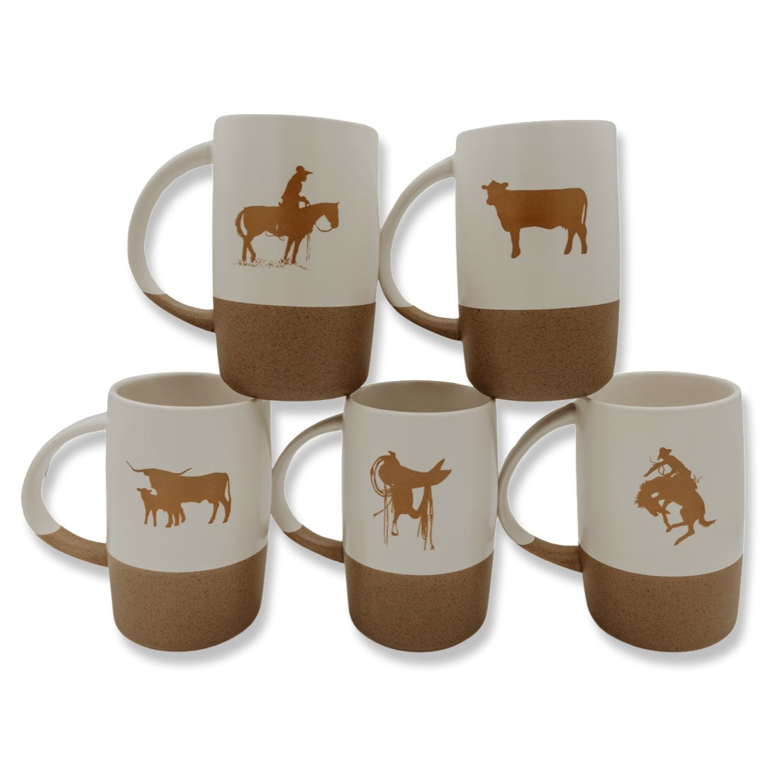 Beautiful, thick ceramic coffee mugs. Get one or the whole matching set! These mugs are 17 oz. for that extra splash of caffeine to make it through the day. Stunning neutral colors and simple design.