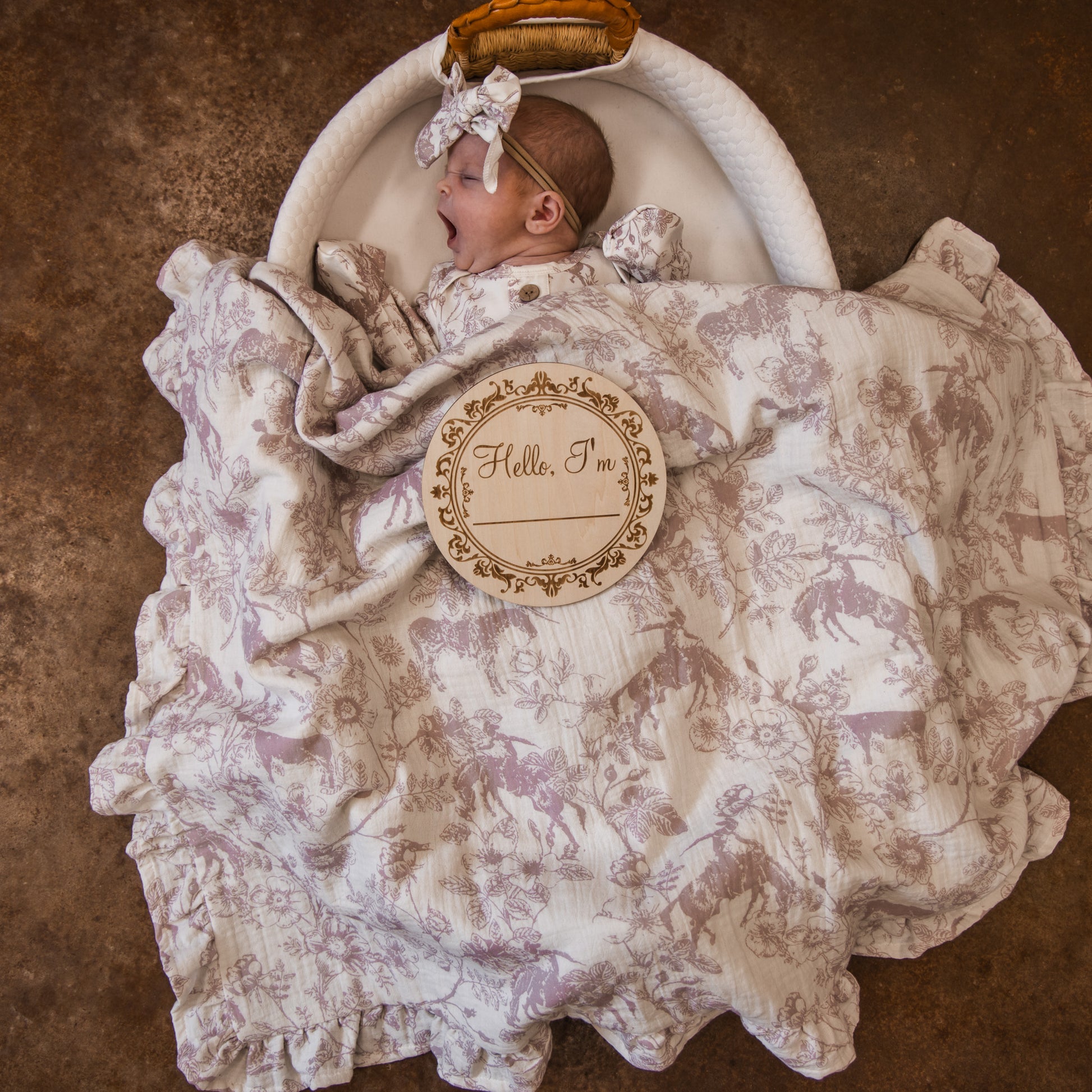 Western Daydream Rose Cotton Muslin Blanket with Scalloped Edges