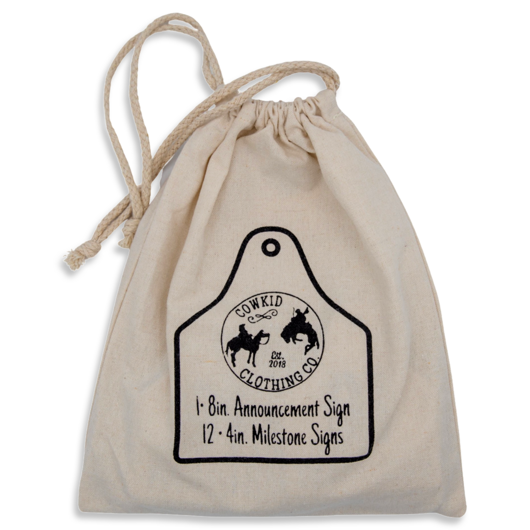 Cattle Tag Wood Announcement Sign & 12 Milestone Signs